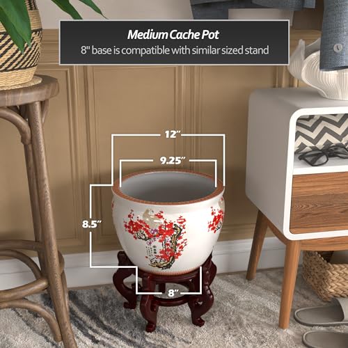 Oriental Furniture 18" Rose Medallion Porcelain Fishbowl