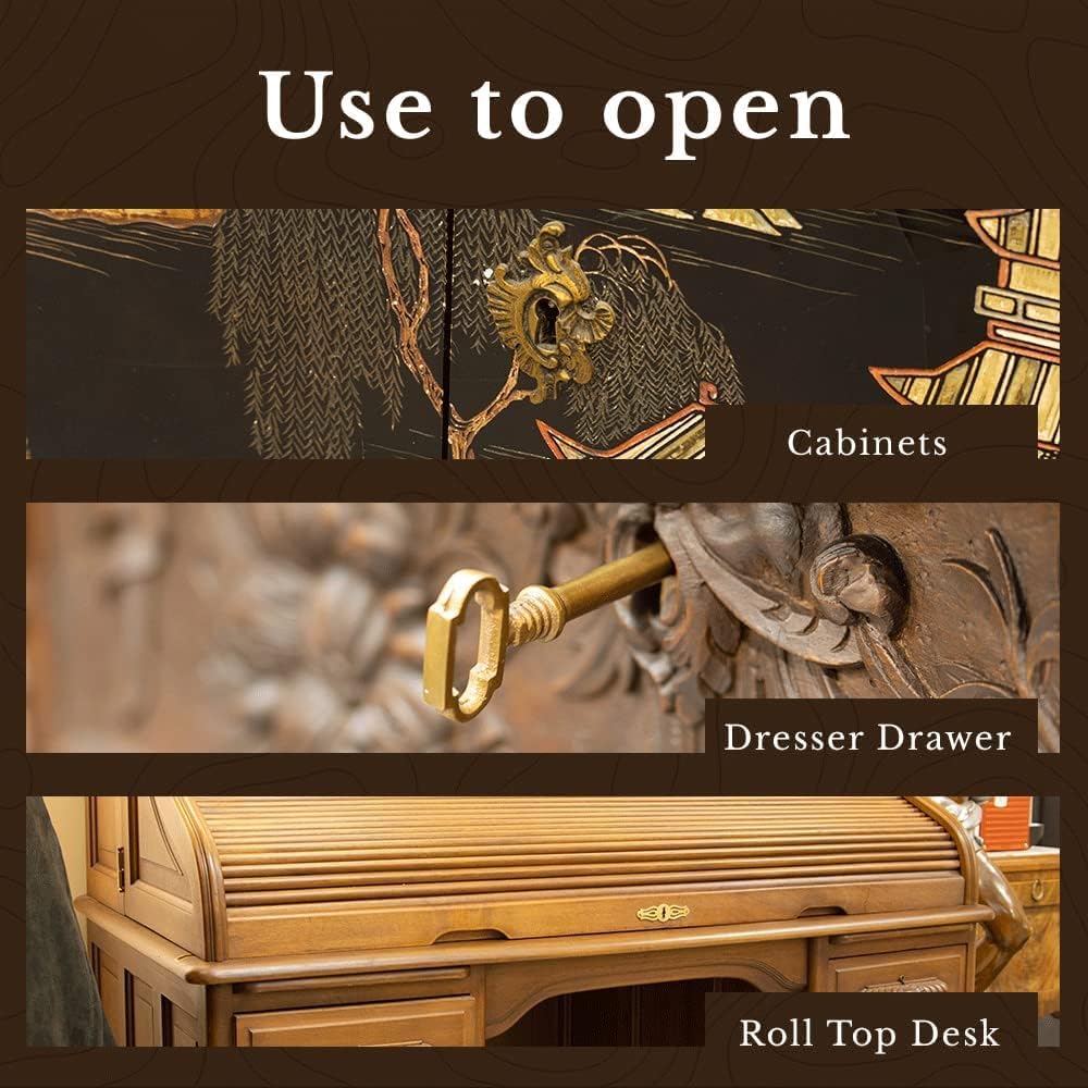 KY-9 KEY SOLID BRASS ANTIQUE SKELETON KEY FANCY KEY + FREE BONUS (SKELETON KEY BADGE)