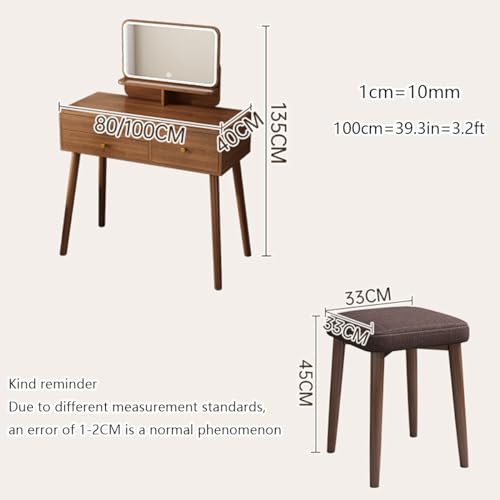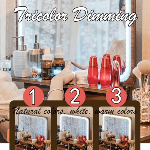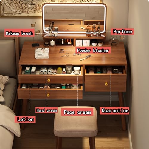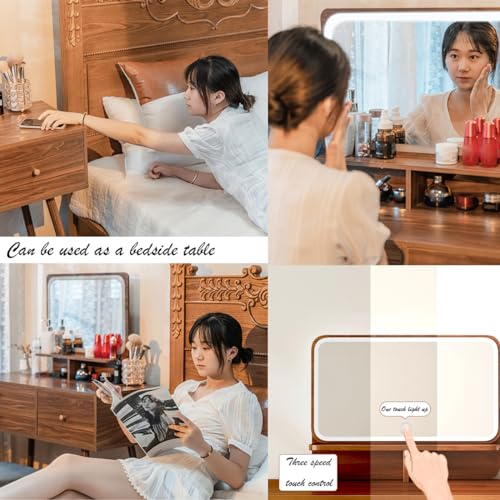 Chinese Style Vanities & Vanity Benches with 3 Color Touch Screen Dimming Mirrorm and Chair, Corner Makeup Vanity Table Set for Bedroom Decor and Gifts,80cm
