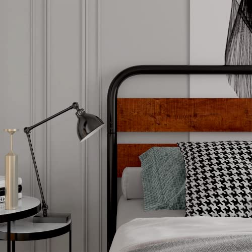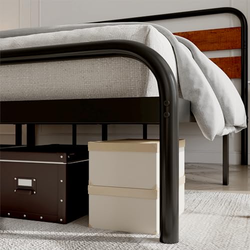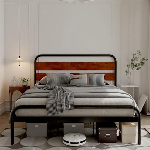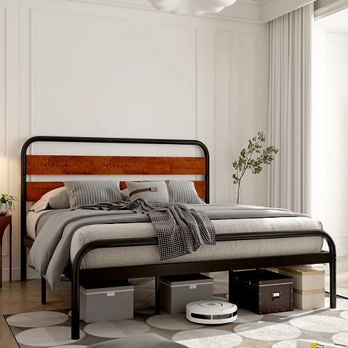 IDEALHOUSE Full Size Bed Frame with Headboard, Platform Full Bed Frame with Safe Rounded Corners & Strong Metal Slats Support, Mattress Foundation, Noise-Free, No Box Spring Needed, Retro Brown