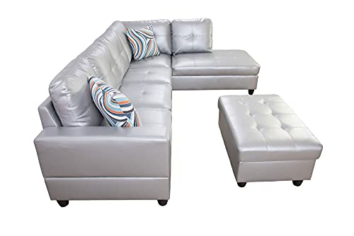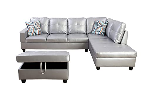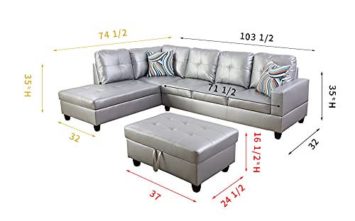 Light Luxury Living Room Sofa Three-Piece Set Artificial Leather Sofa Set Ottoman Storage Chair Reclining Bench (Right Facing, Ivory White & Black,F09519)