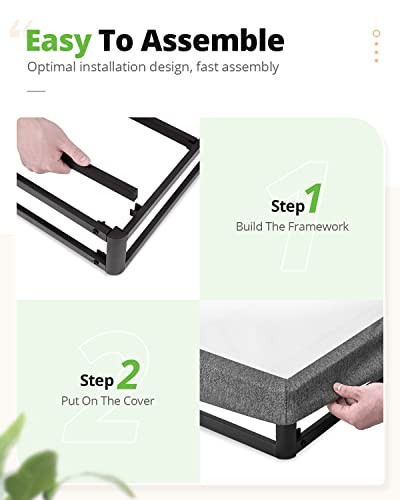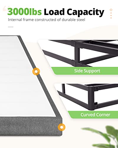Full Steel Box Spring 9" Mattress Foundation, 3000lbs Capacity, Low Profile, Heavy Duty, Easy Assembly, Non-Slip, No Noise