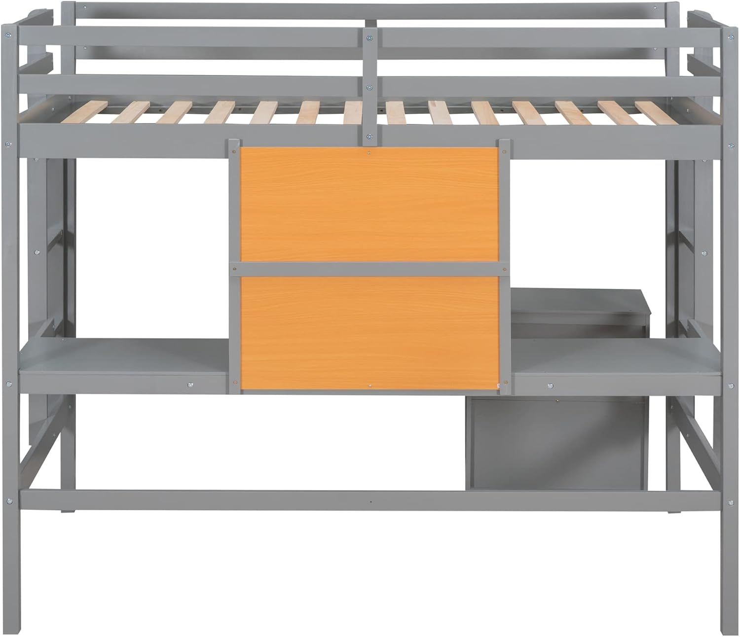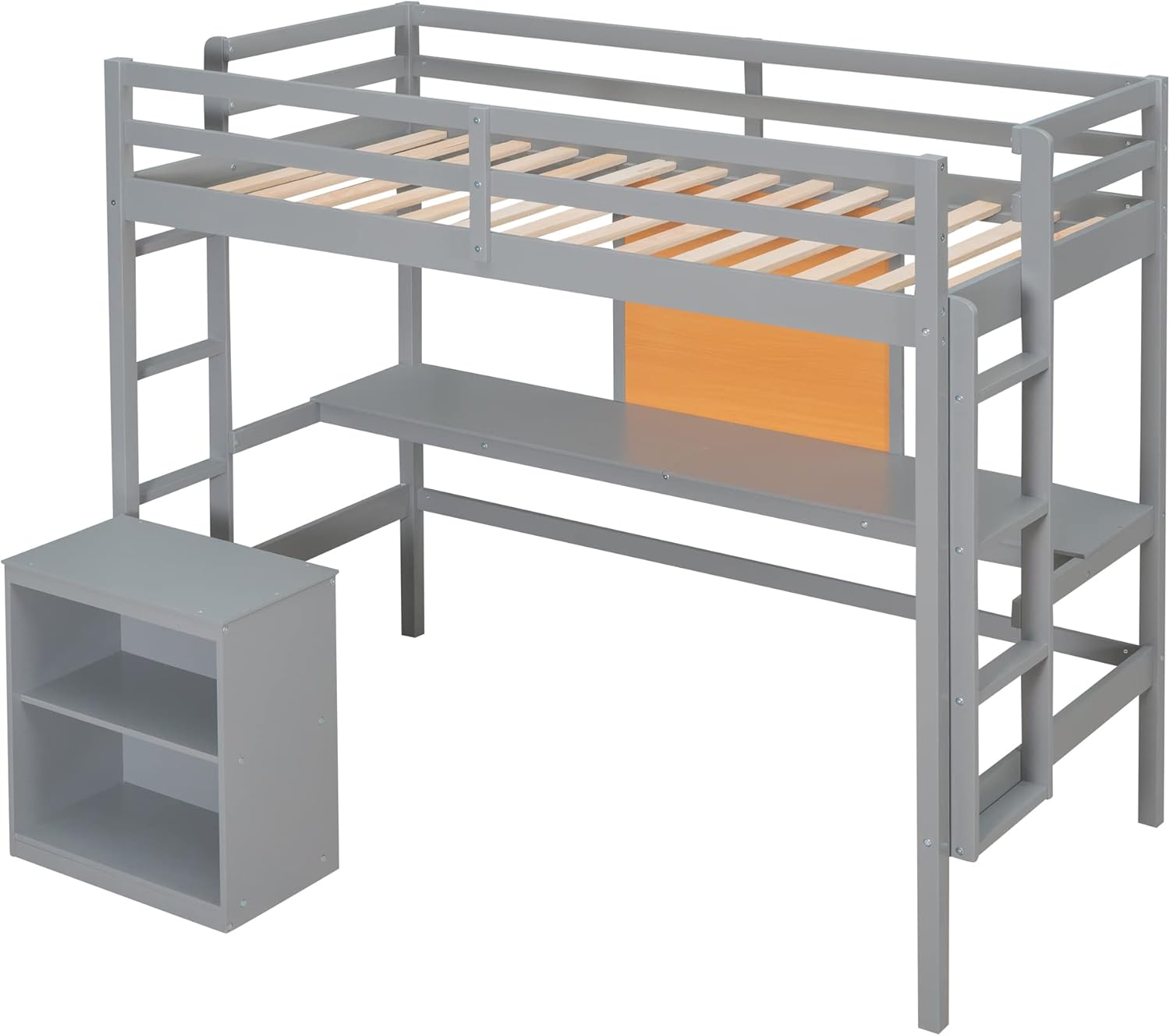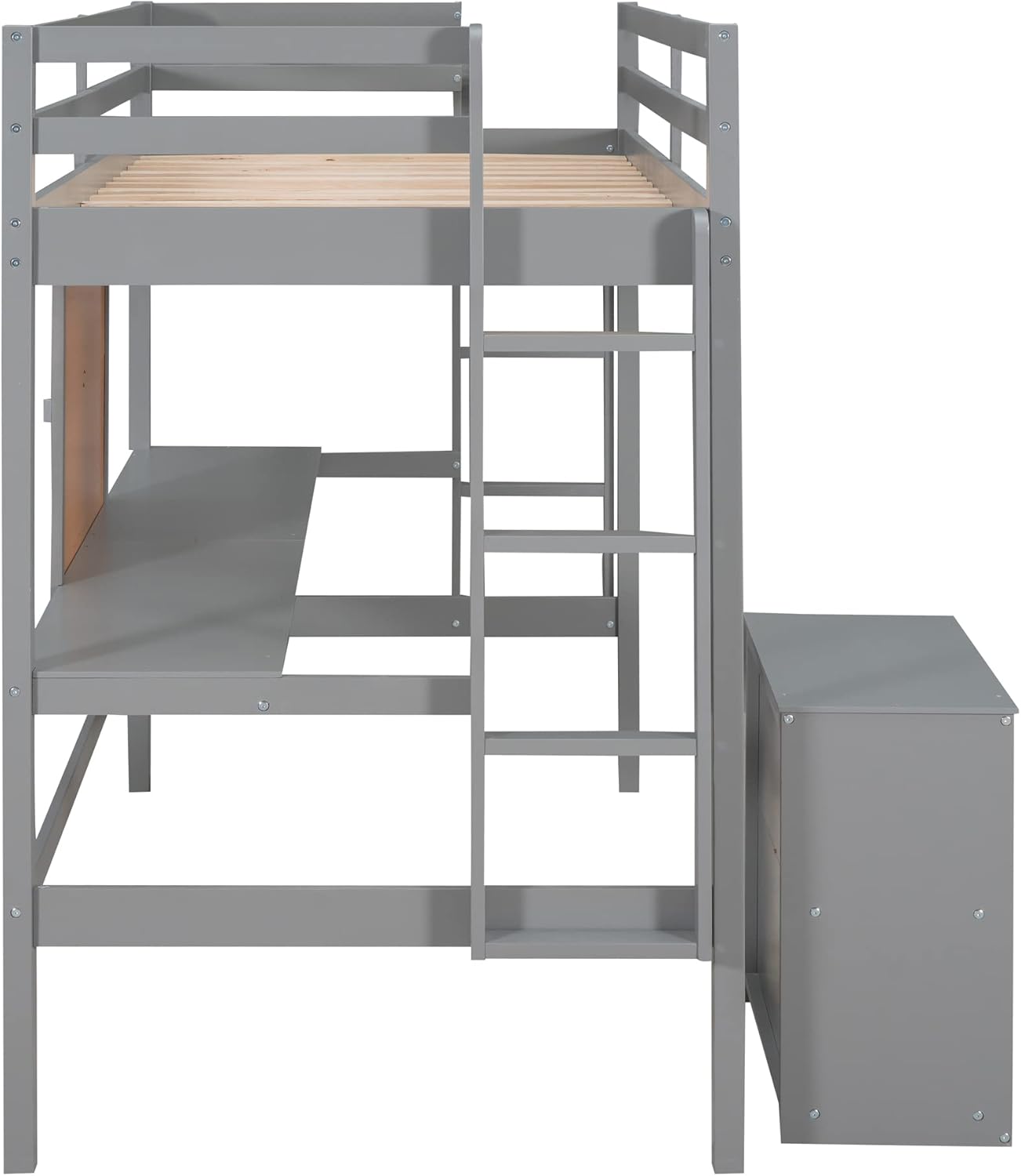 Twin Size Loft Bed with Desk and Writing Board,Solid Wood Twin Loft Bed Frame with 2 Drawers Cabinet and Safety Guardrail for Kids Teens Adults,Bedroom,Gray