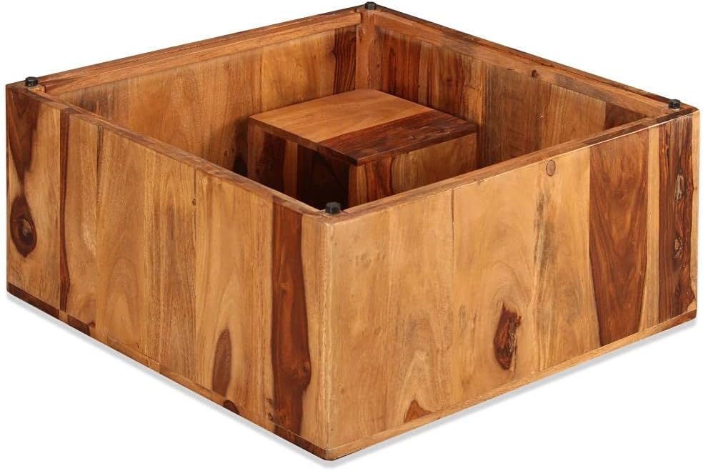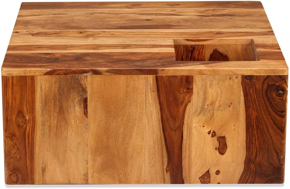 Tidyard Rustic Coffee Table with Square Recessed Storage Compartment Sheesham Wood Sofa and Couch End Side Table Living Room Home Furniture 27.6 x 27.6 x 11.8 in Small Space