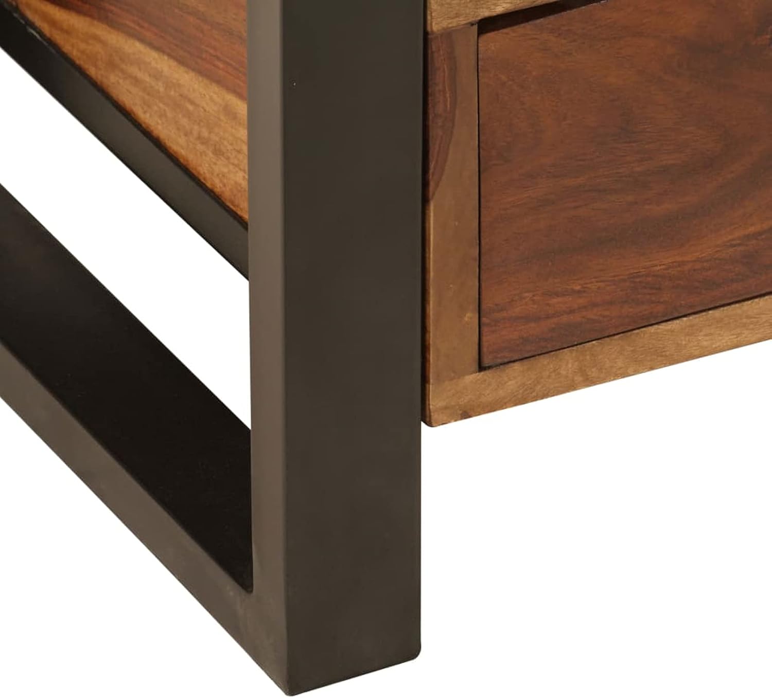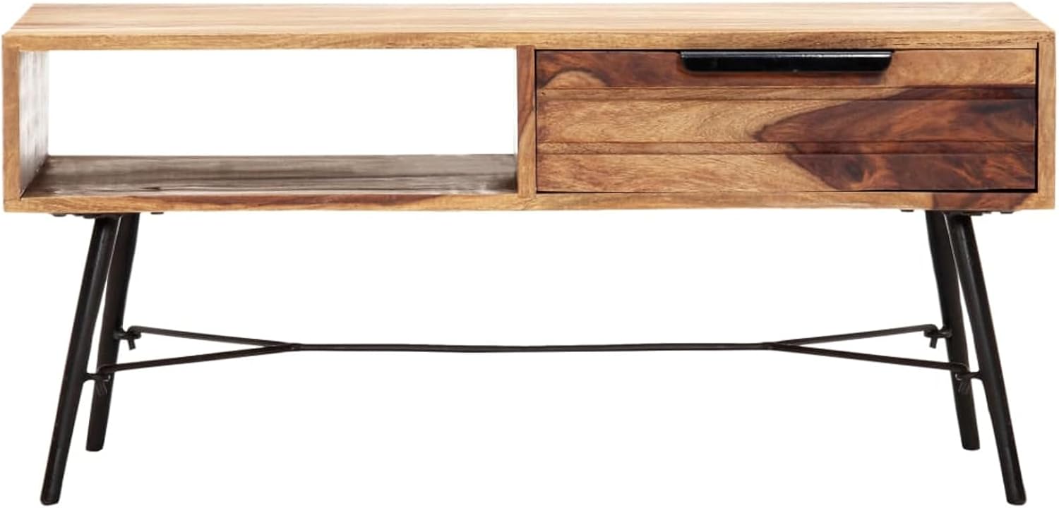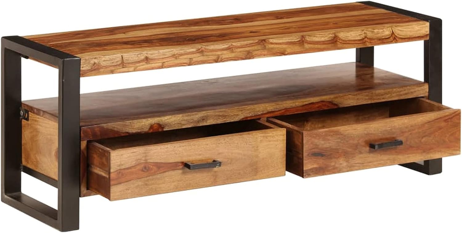 Tidyard Wooden TV Cabinet with Storage Drawers and Open Shelf Sheesham Wood Television Stand Sofa Couch End Side Table Steel Legs for Living Room Home Furniture 47.2 x 13.8 x 17.7 Inches (W x D x H)