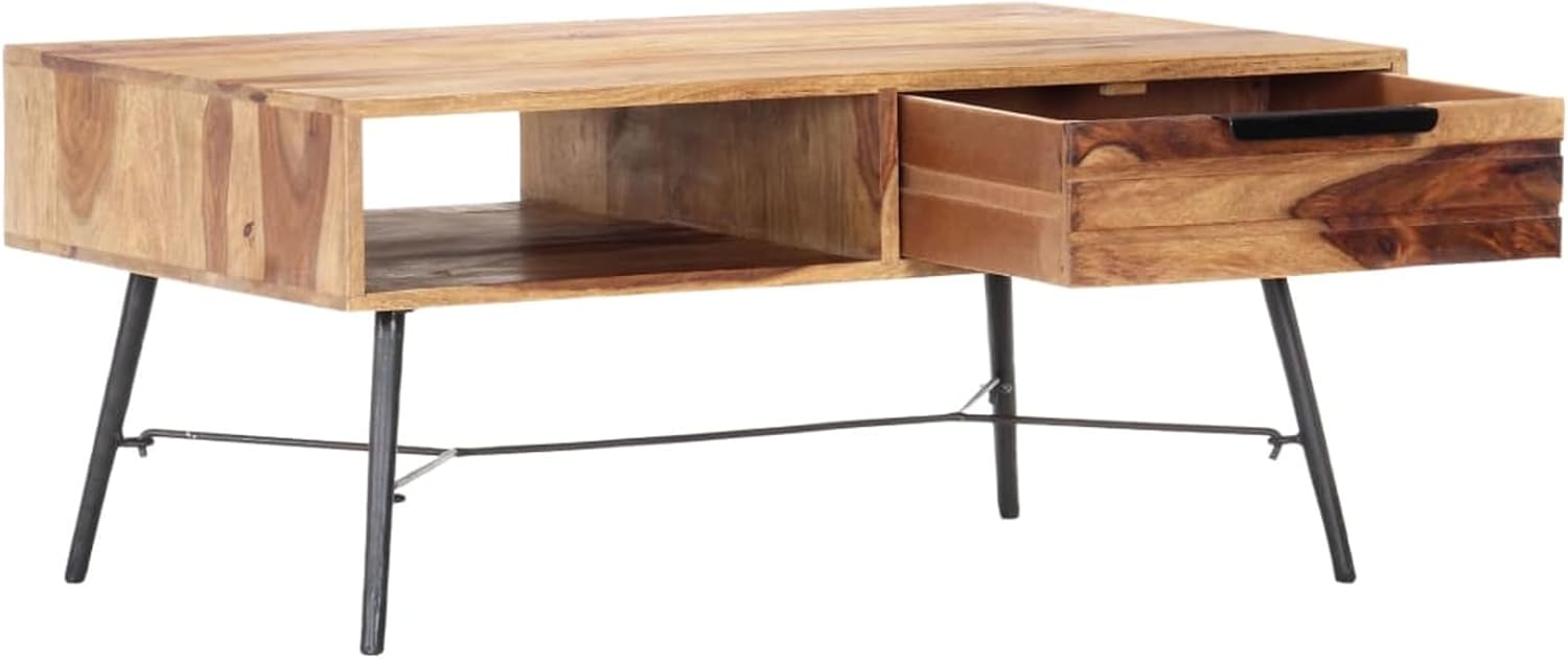 Tidyard Coffee Table with Storage Drawer and Compartment Sheesham Wood Sofa and Couch End Side Table for Living Room, Home Furniture 34.6 x 21.7 x 15.7 in Small Space