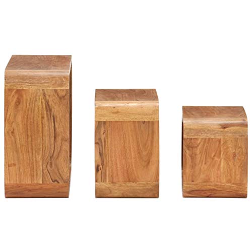 Side Tables 3 pcsBalcony Table,Coffe Table,Wood Nightstand,Bedroom Side Tables,Sofa Tables,Snack Table,for Living Room, Bedroom, Lounge, Office, Solid Acacia Wood Sheesham Finish
