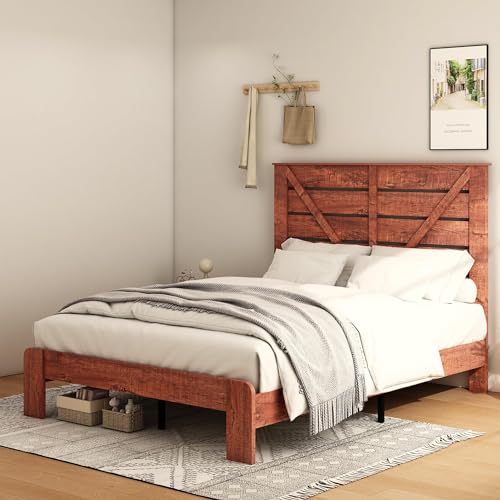 Queen Bed Frame with Wooden Headboard and Wood Slats Support Mattress Foundation,Noise Free Wood Platform Bed Frame,No Box Spring Needed and Easy Assembly,Large Under Bed Storage