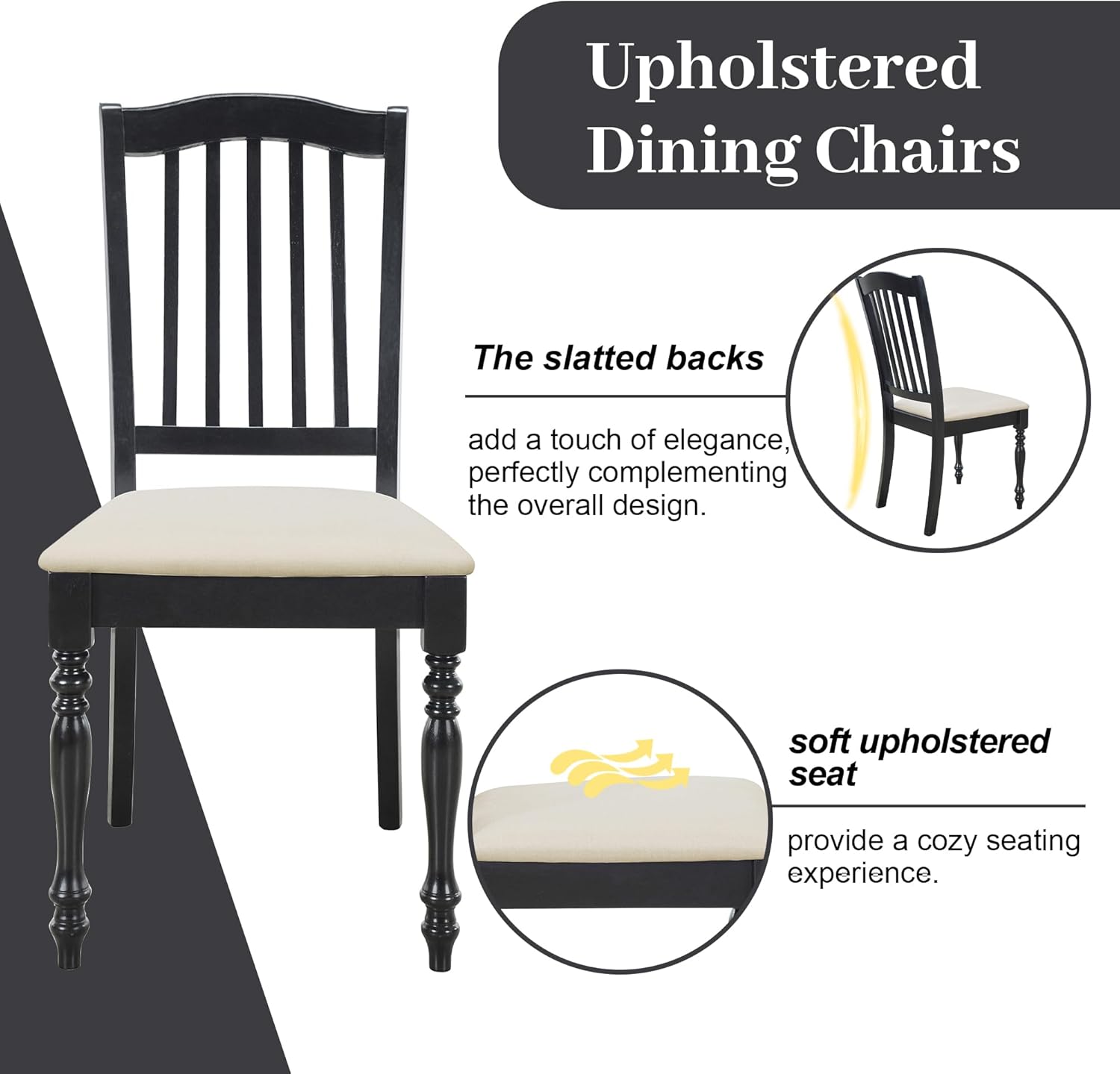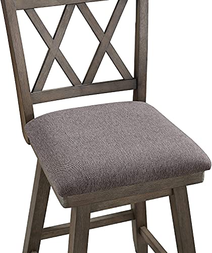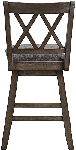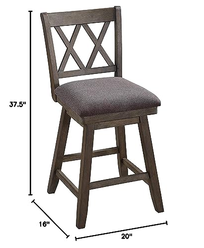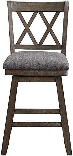 Home Brookline Swivel Bar Stool Chair with 360° Turn Mechanism, Rustic Farmhouse Stools for Kitchen Counter with Cushion, 24" Seat Height, Black Wood Finish with Beige Cushion