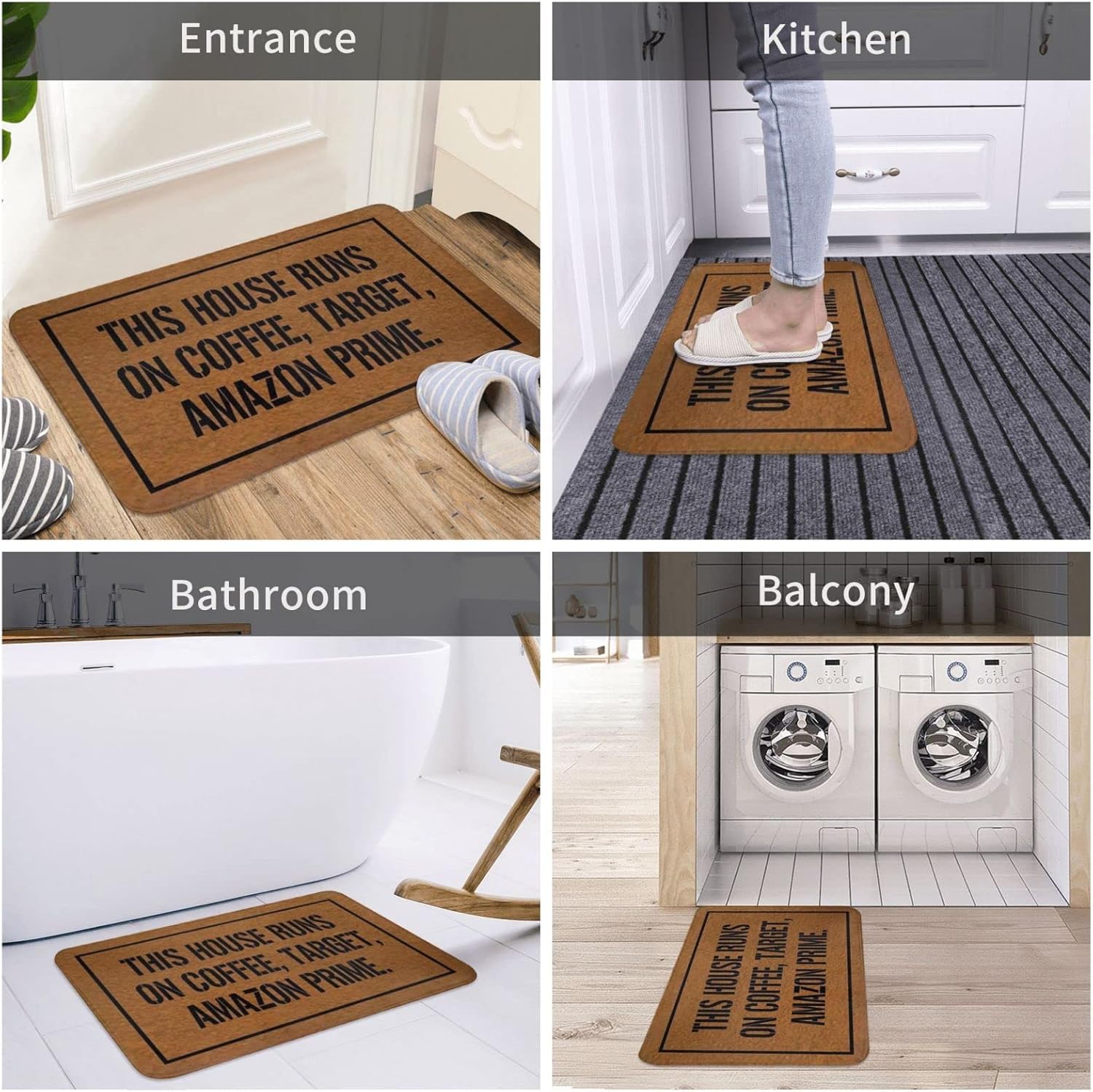 Doormat 15.7 × 23.6 Inch This House Runs On Coffee Target Front Door Mat Entrance Door Rugs Non-Slip Door Mat Funny Holiday Welcome Mats for Home Indoor Outdoor