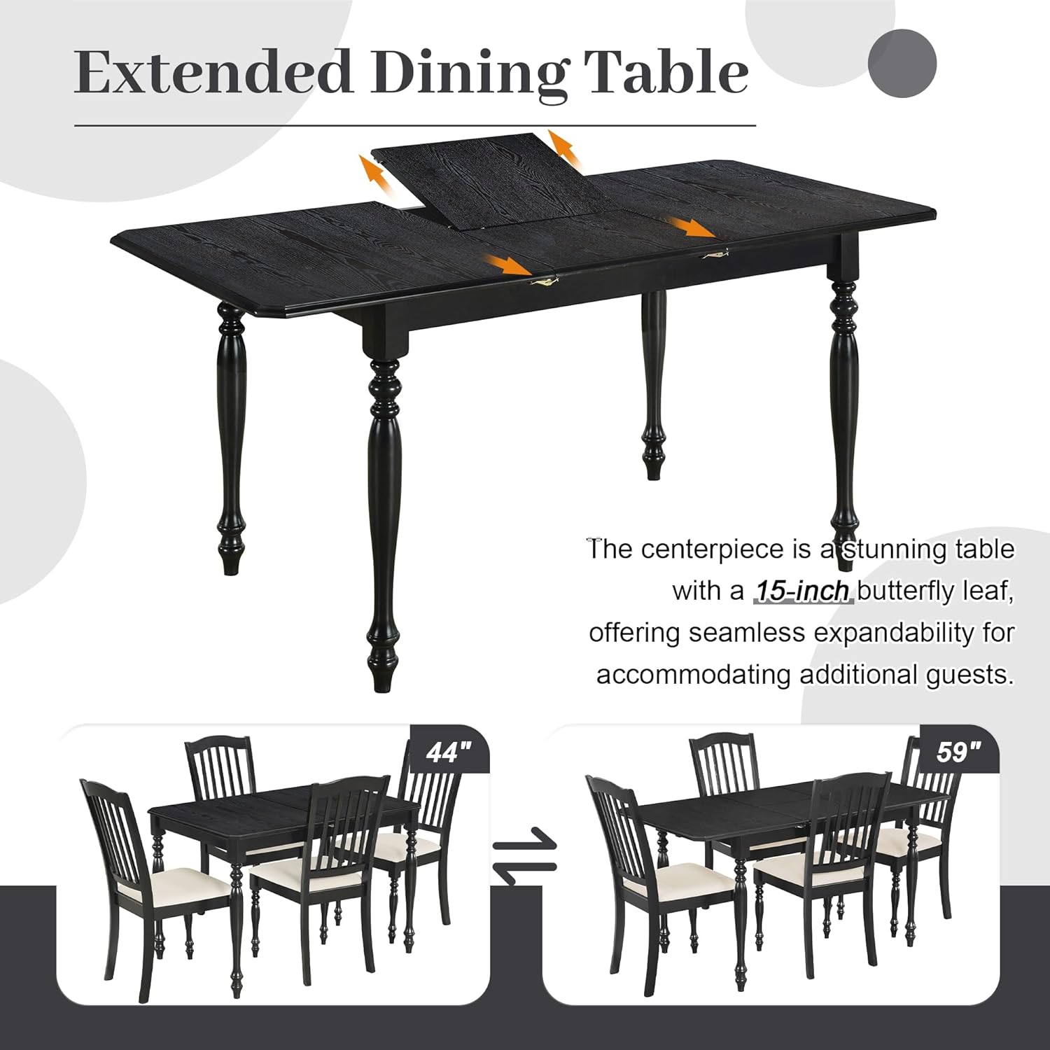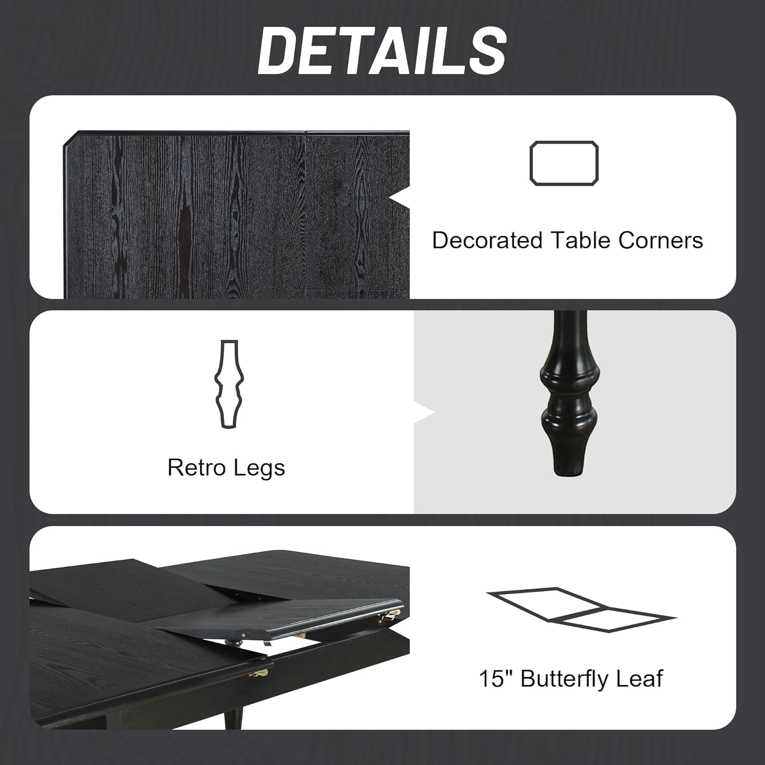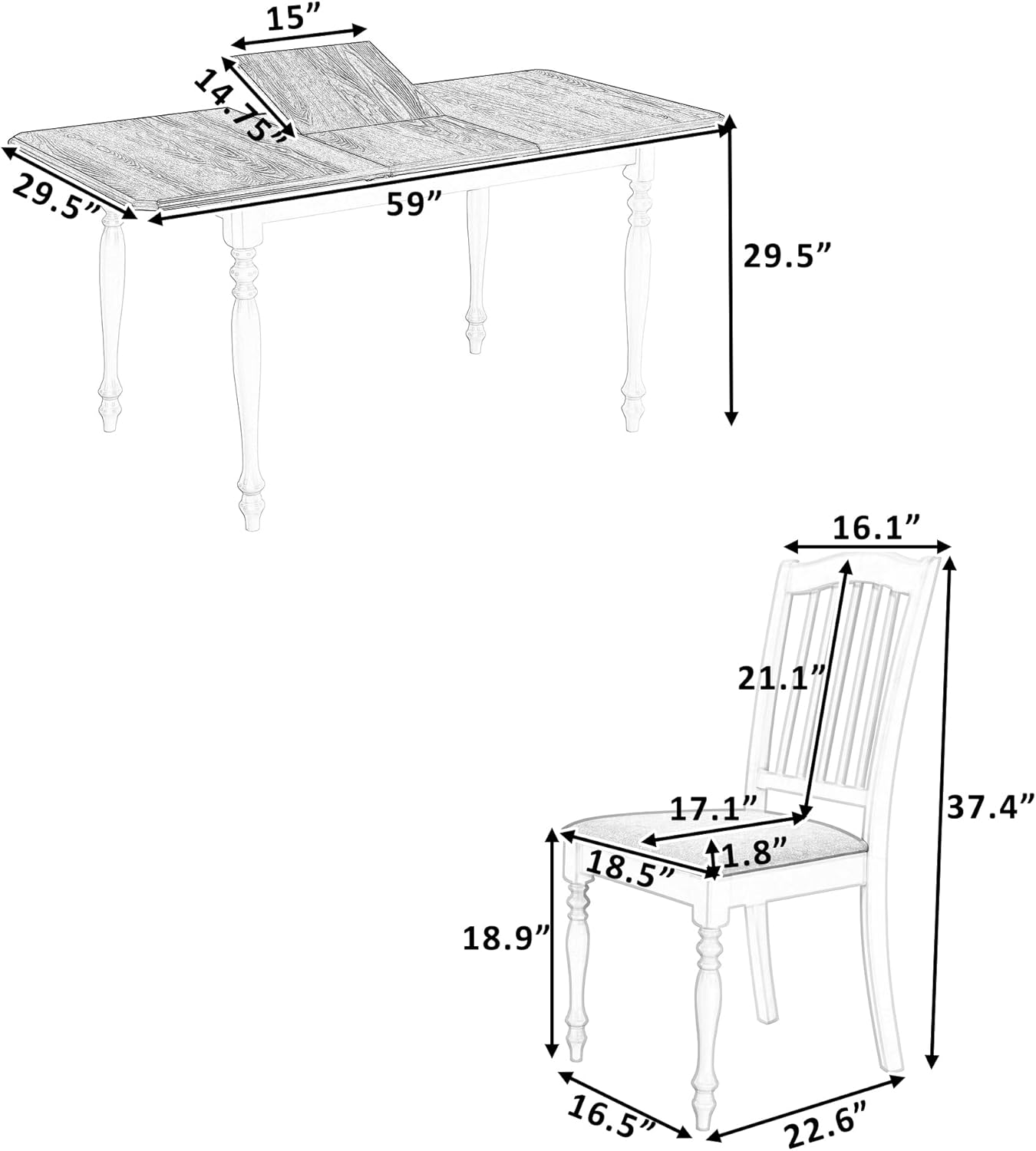 Mid-Century 5-Piece Wood Indoor Modern Rectangular Table Furniture Set with 4 Chairs for Kitchen, Dining Room, Dinette, Grey