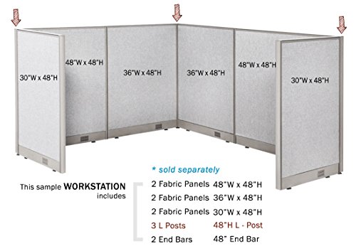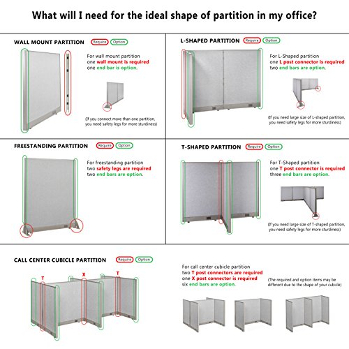 GOF 6ft / 72" H T-Post, Office Partition Connectors: L-Post, T-Post, X-Post, Wall Mount Intended to use Full Fabric or Partial Glass Series, Connector only
