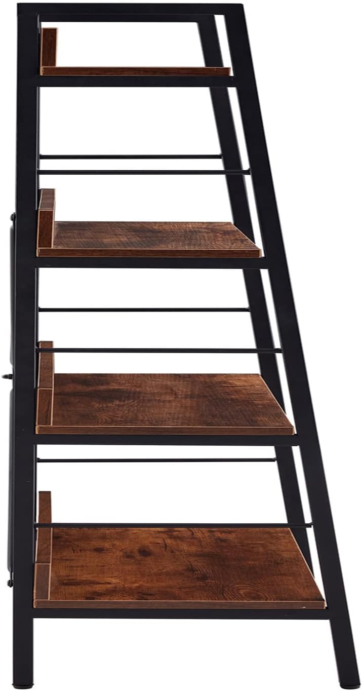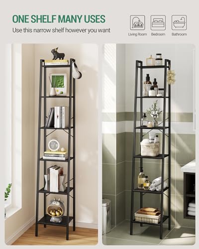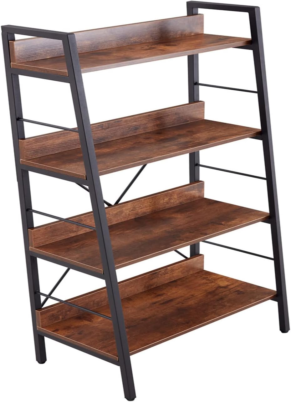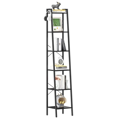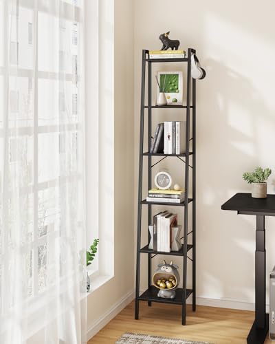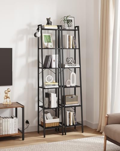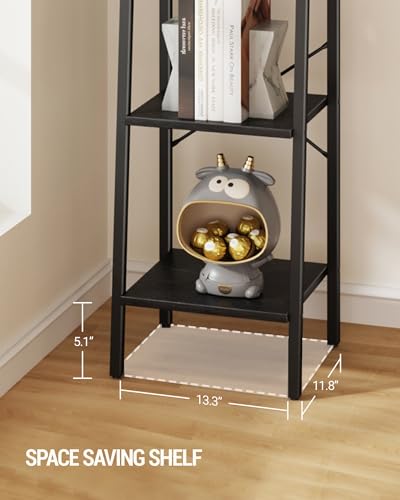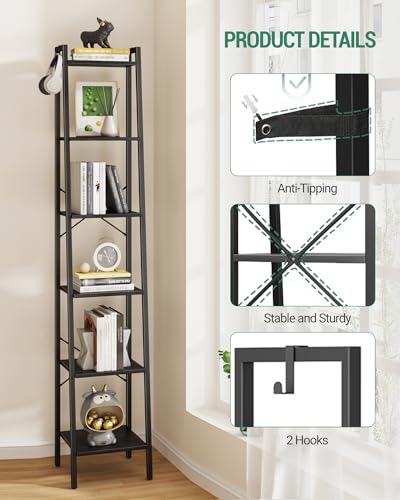 Ladder Shelf, Bookshelf Bookcase, Freestanding Corner Storage Shelve with 2 Hooks for Home Office, Living Room, Kitchen, Bedroom, Industrial, 5-Tier Rustic Brown BC19201B