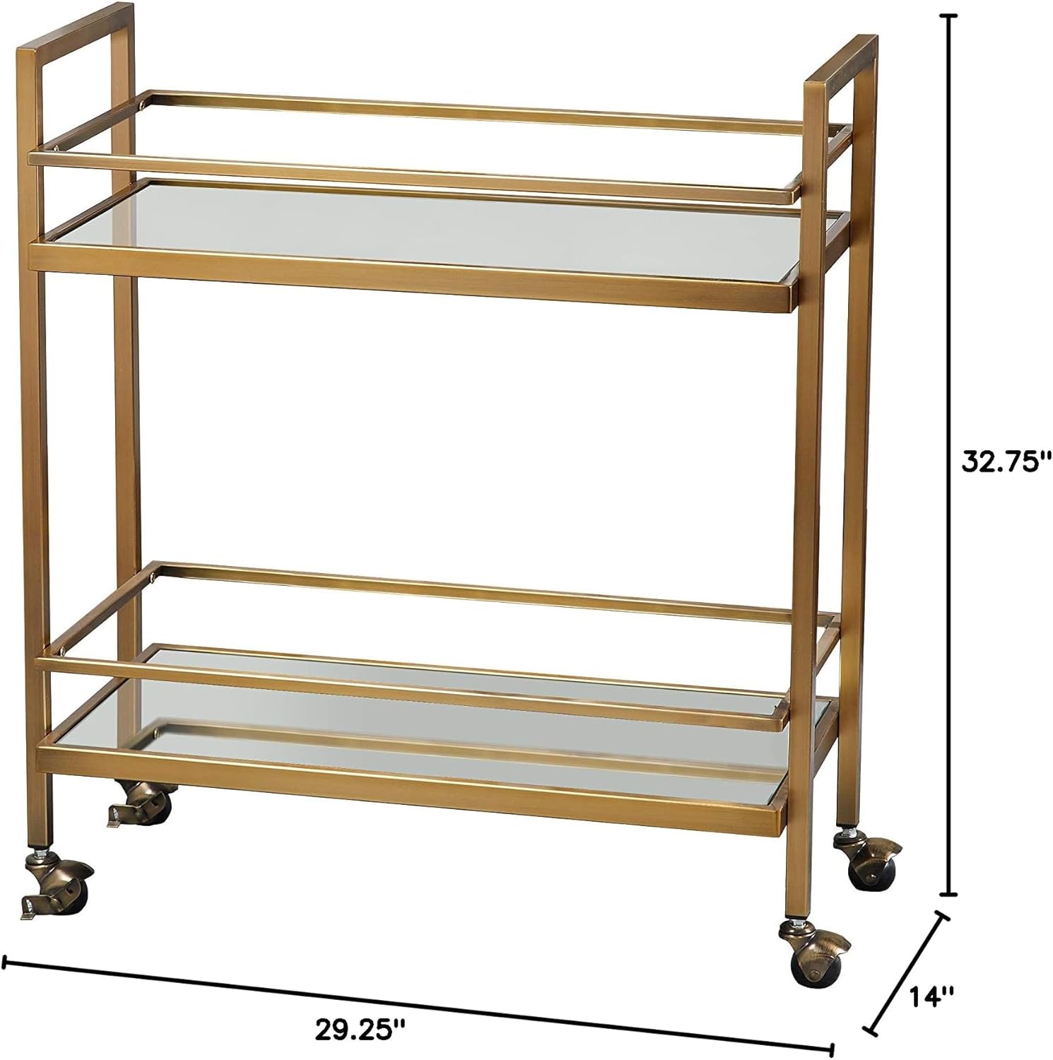 Manhattan Modern 2 Shelf Rolling Bar Cart, 29.25", Gold