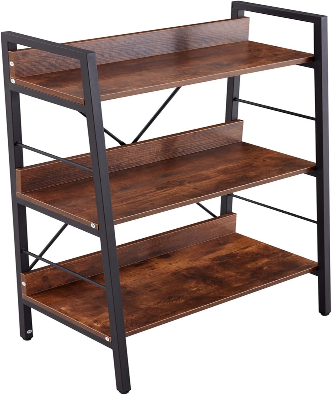 Small Bookshelf Multilayer Ladder Bookshelf Bookcase with X Design Book Organizer Bookshelf with Metal Frame Corner Bookshelf Industrial Bookshelf for Bedroom Home Office Small Space (3 Tier + 4 Tier)