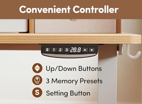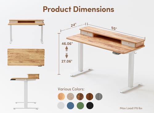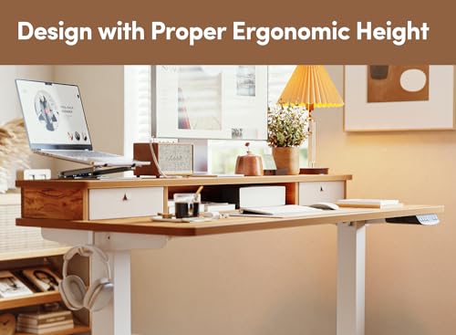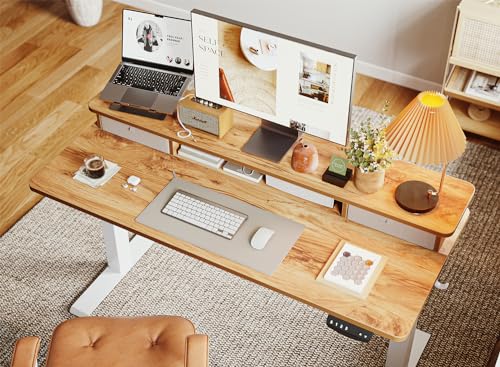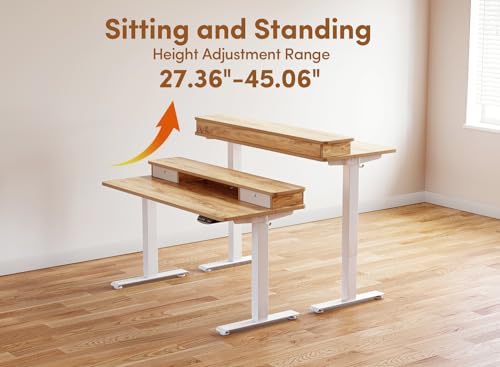 BANTI 48 x 24 Inch Electric Standing Desk with 3 Drawers, Adjustable Height Stand Up Desk, Sit Stand Home Office Desk with Storage Shelf, Rustic Brown Top