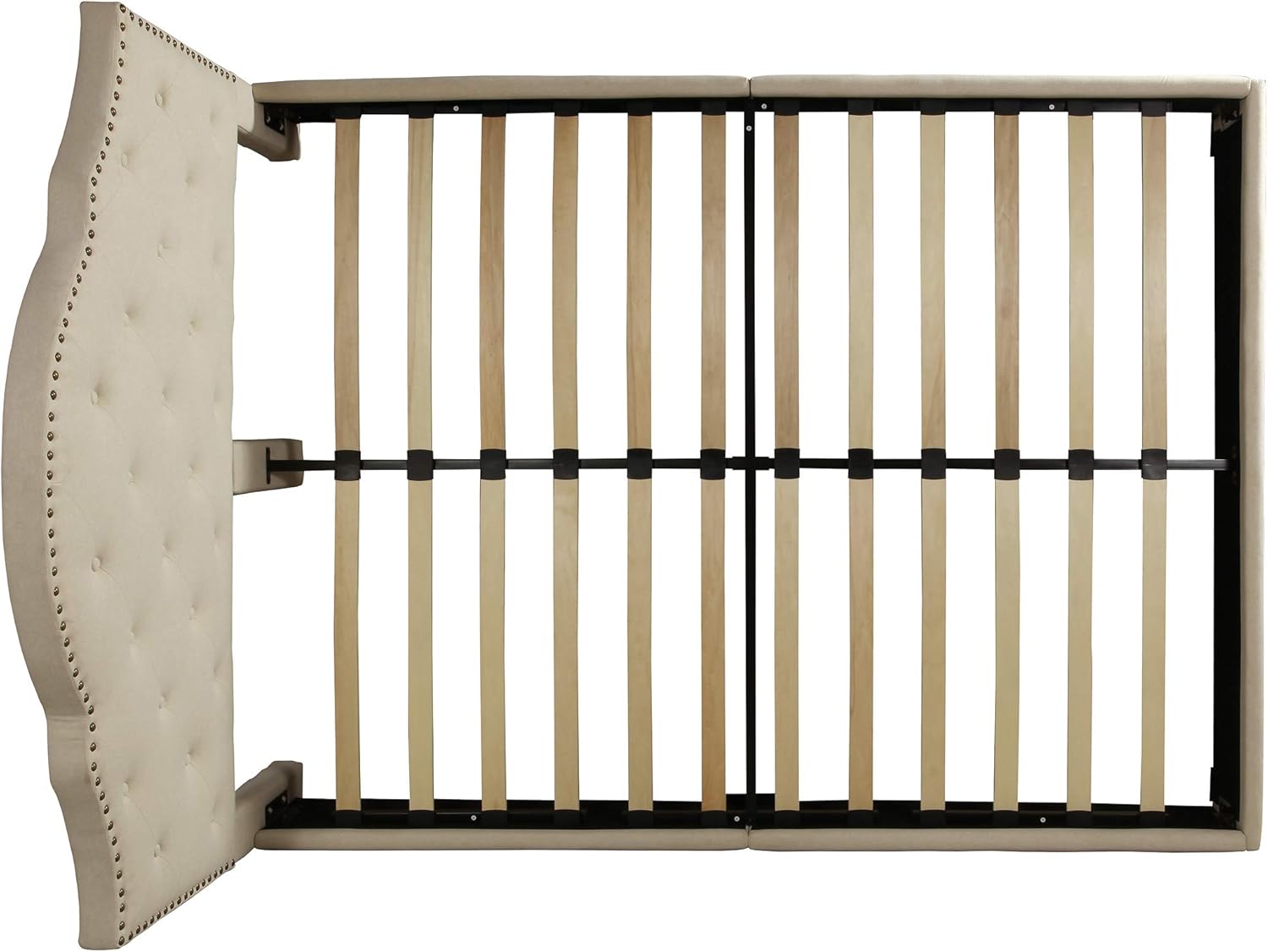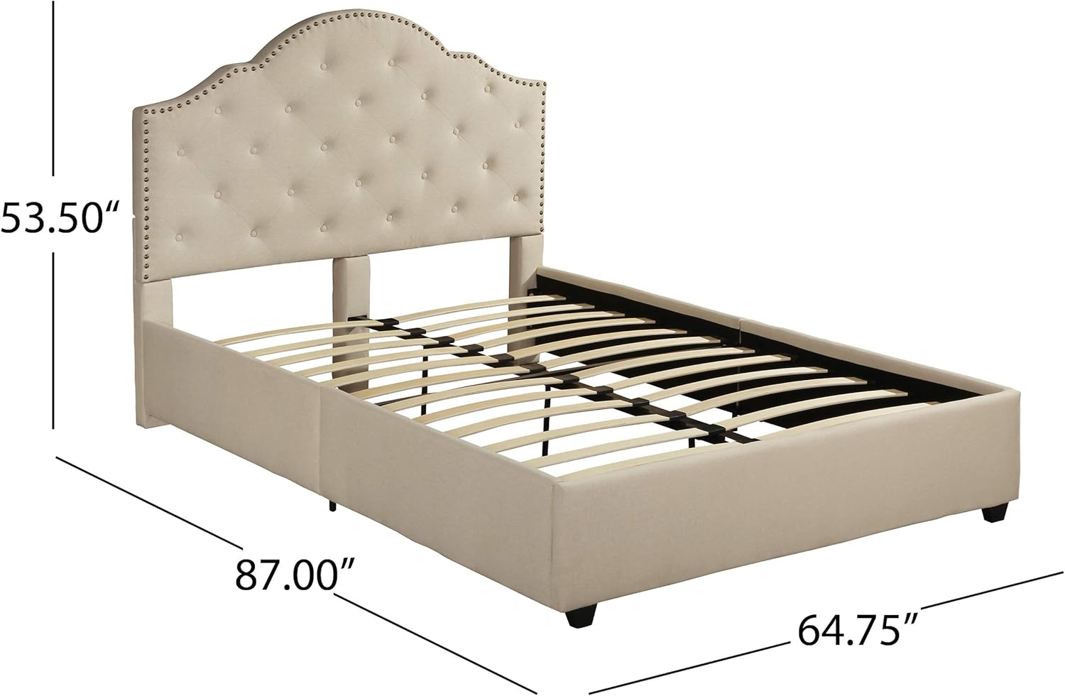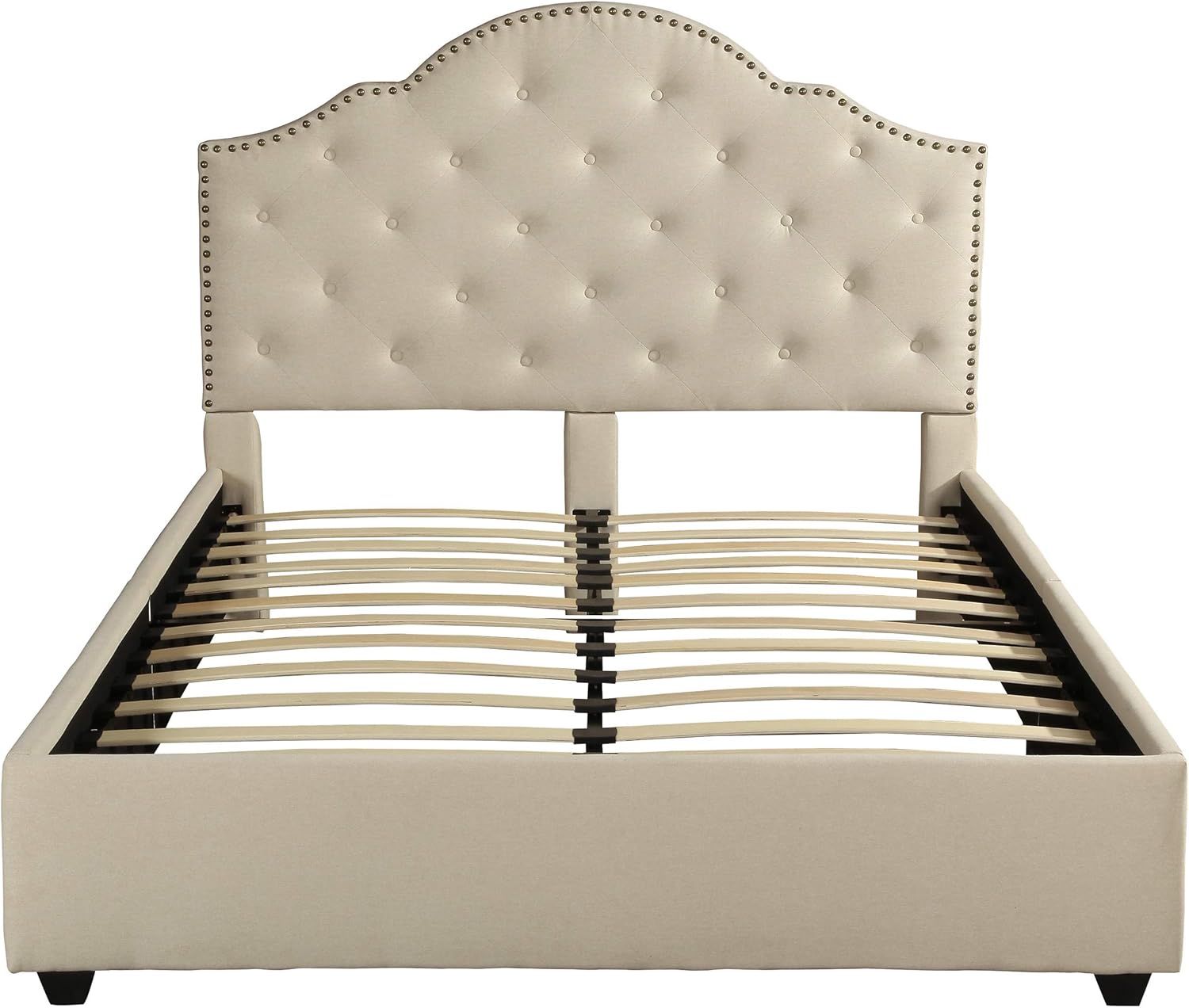 Great Deal Furniture Contemporary Button-Tufted Upholstered Queen Bed Frame with Nailhead Accents, Beige