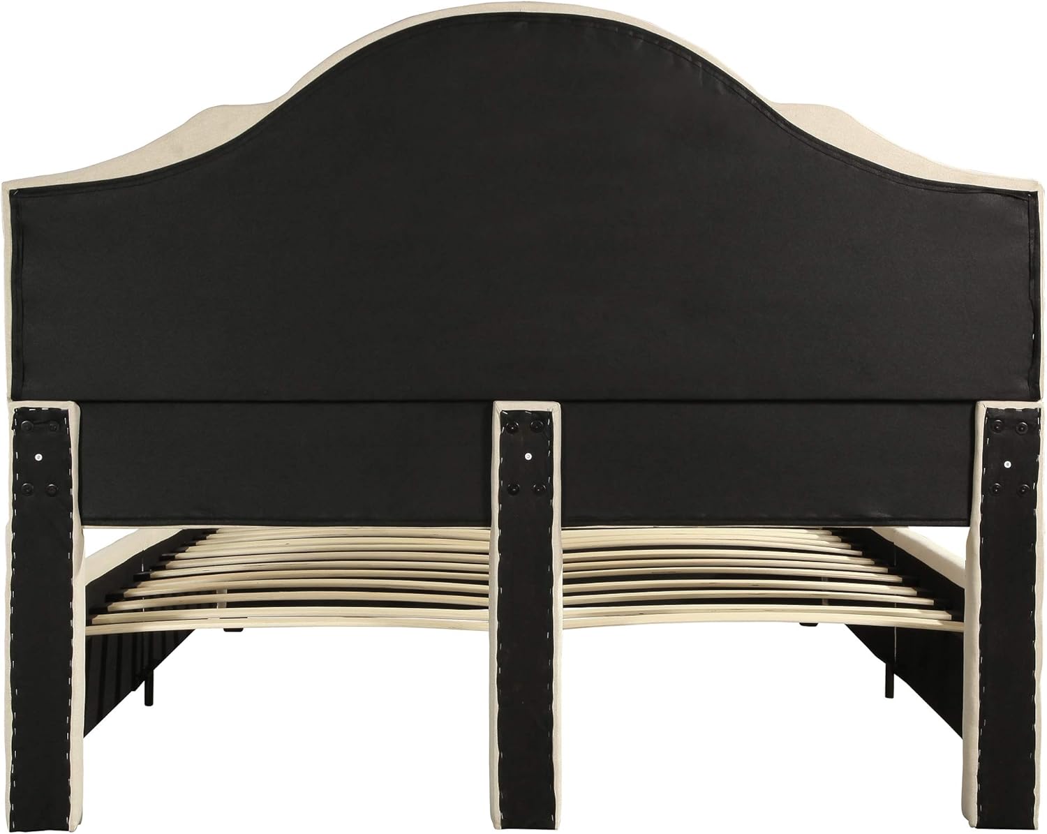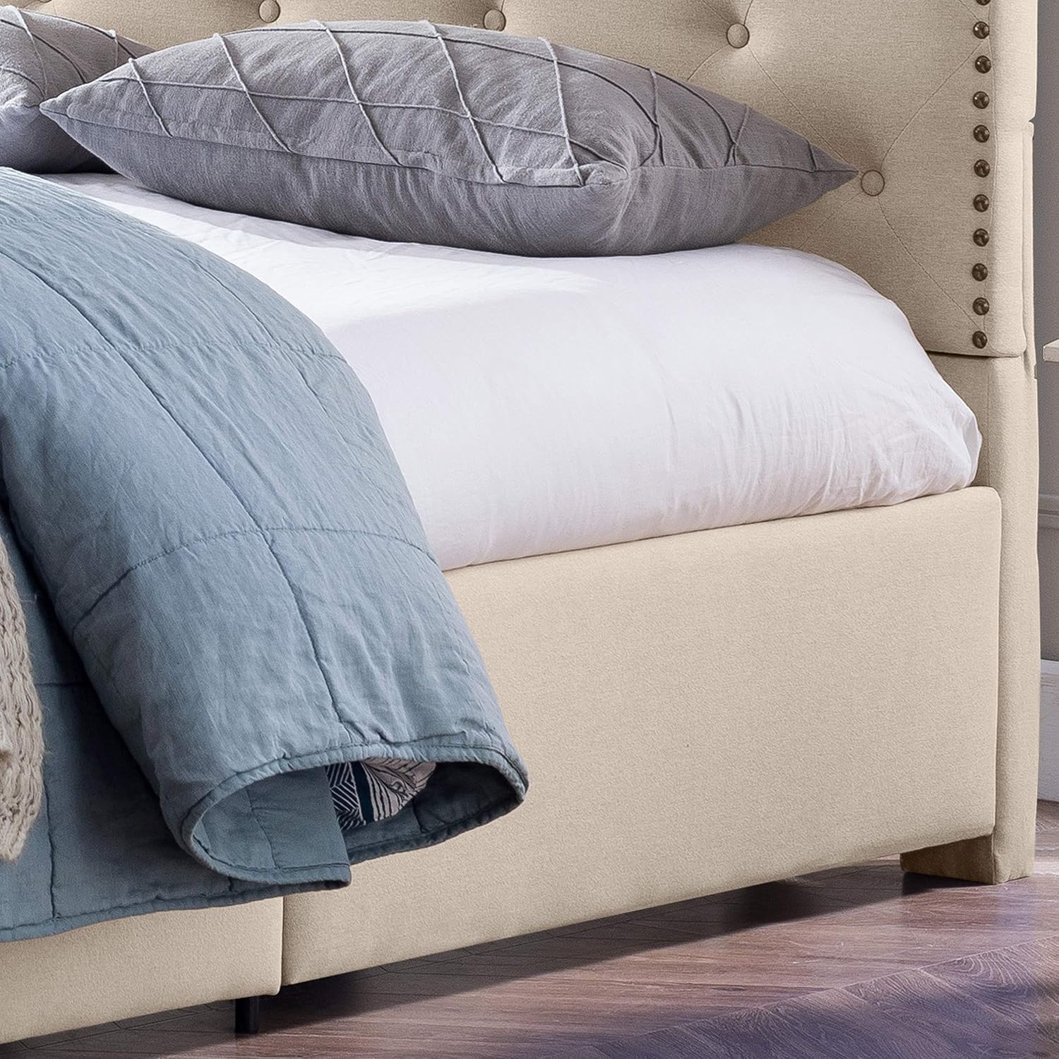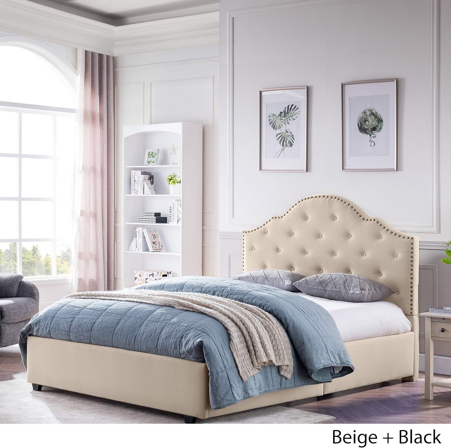 Great Deal Furniture Contemporary Button-Tufted Upholstered Queen Bed Frame with Nailhead Accents, Beige