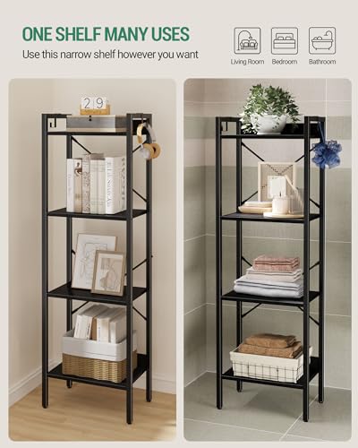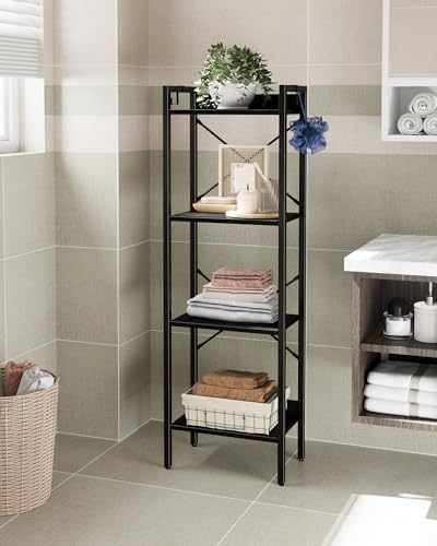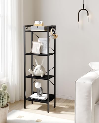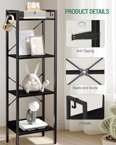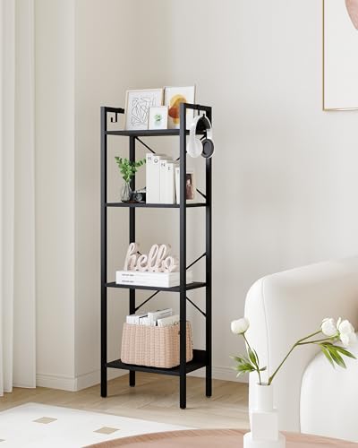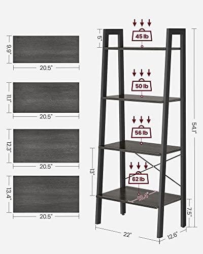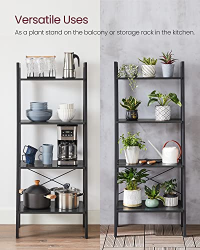 VASAGLE Ladder Shelf, 4-Tier Bookshelf, Storage Rack, Bookcase with Steel Frame, for Living Room, Home Office, Kitchen, Bedroom, Industrial Style, Rustic Dark Brown and Black ULLS44BF