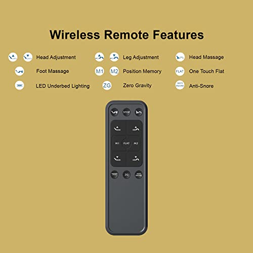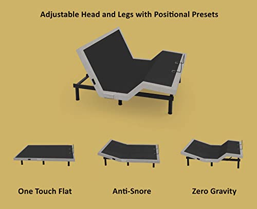 King Adjustable Base with 12 Inch Gel Memory Foam Mattress | Dual Massage | Underbed Light | Wireless Remote | USB Ports | Zero Gravity
