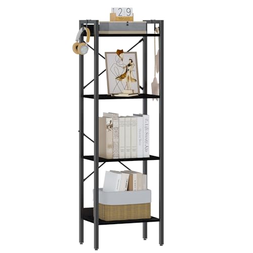 Bookshelf, Book Shelf, Industrial Bookcase with 2 Hooks, Coner Shelf Storage Organizer for Home Office, Living Room, Bedroom, Kitchen, 6-Tier Rustic Brown BC22701B