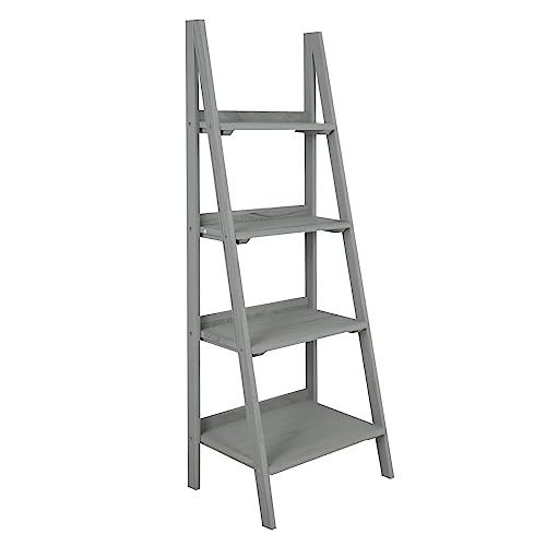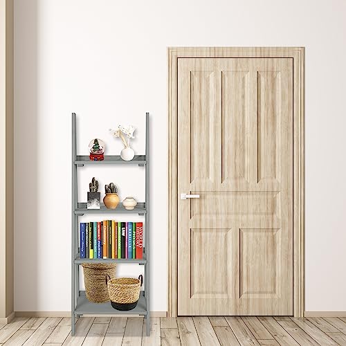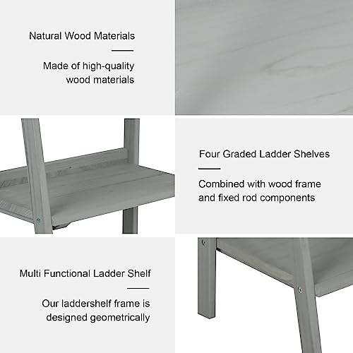 ECOMEX Ladder Shelf, 4 Tier Wooden Ladder Shelf Bookshelf, Rustic Plant Shelves Storage Rack for Home Bedroom Office, Black