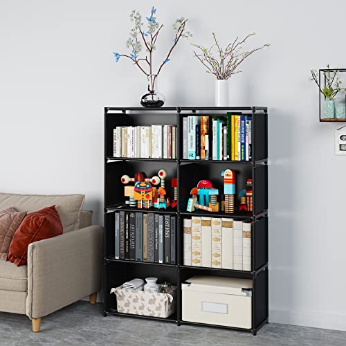 Bookshelf, Assembled Storage Rack, Bedroom Living Room Vertical Cabinet Bookshelf, Double Row 9-Grid Multi-Functional Storage Equipment (Grey)