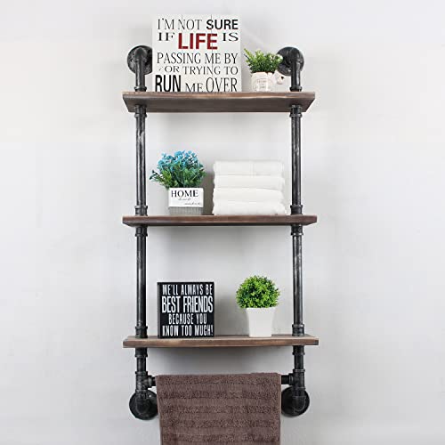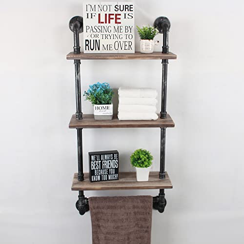MBQQ Industrial Pipe Shelf Bathroom Shelves Wall Mounted,19.6in Rustic Wood Shelf with Towel Bar,1 Tier Farmhouse Towel Rack Over Toilet,Pipe Shelving Floating Shelves Towel Holder,Retro Grey