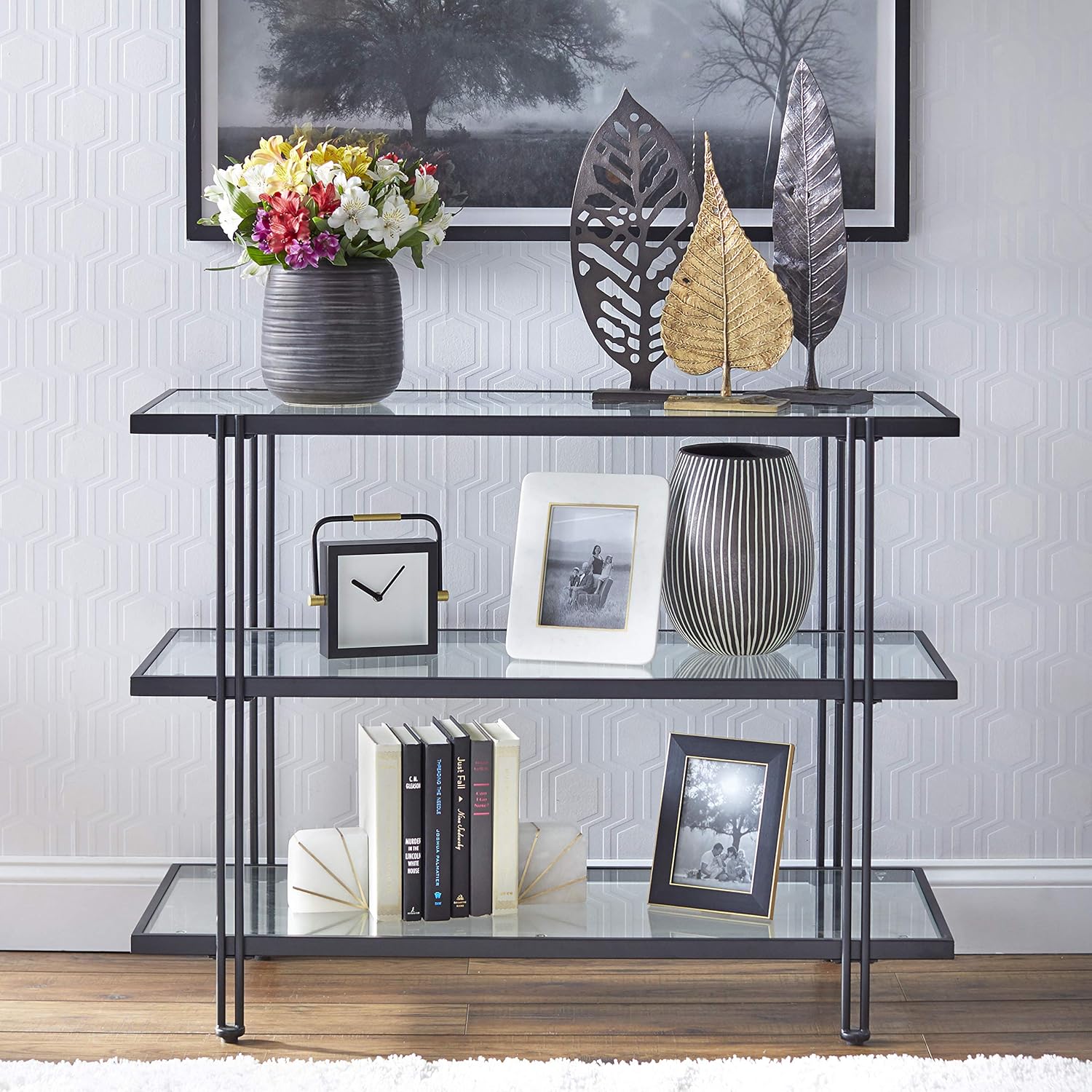 Folio Mid Century Modern Living Room Tempered Glass Sofa Table with 2 Bottom Shelf, 42", Black
