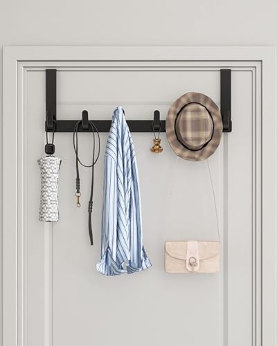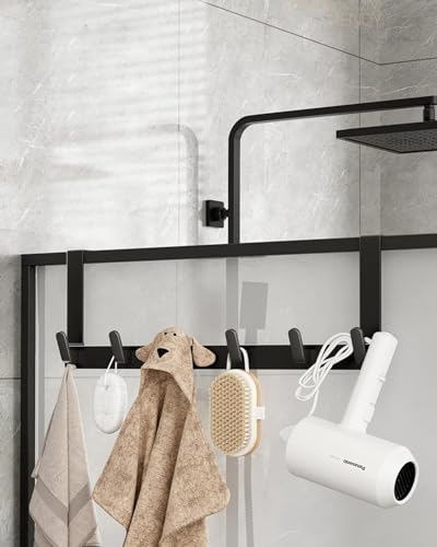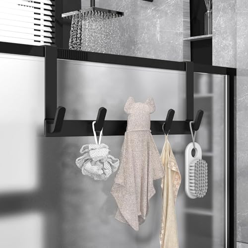 Over The Door Hooks Hanger with Extended Arms - Bathroom Accessories and Towel Rack Organizer Holder for Coat Robe Hat - 1 Pack, Matte Black