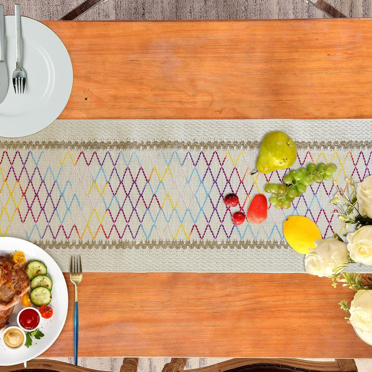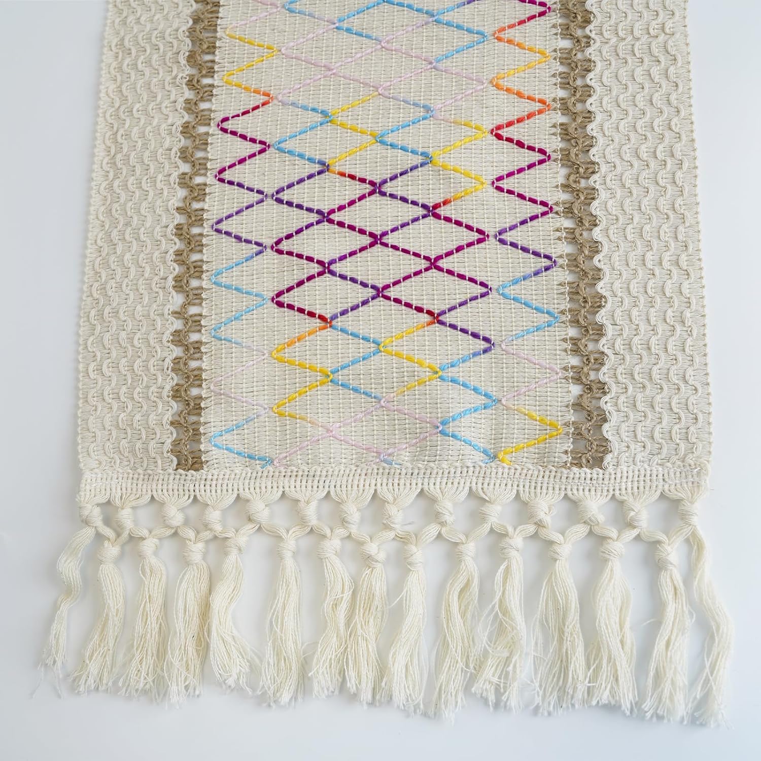 OSVINO Table Runner for Home Decor 72 Inches Boho Handmade Tassels Table Runners Natural Cotton Woven Runner for Holiday Party Bridal Shower Wedding Dining Decorations