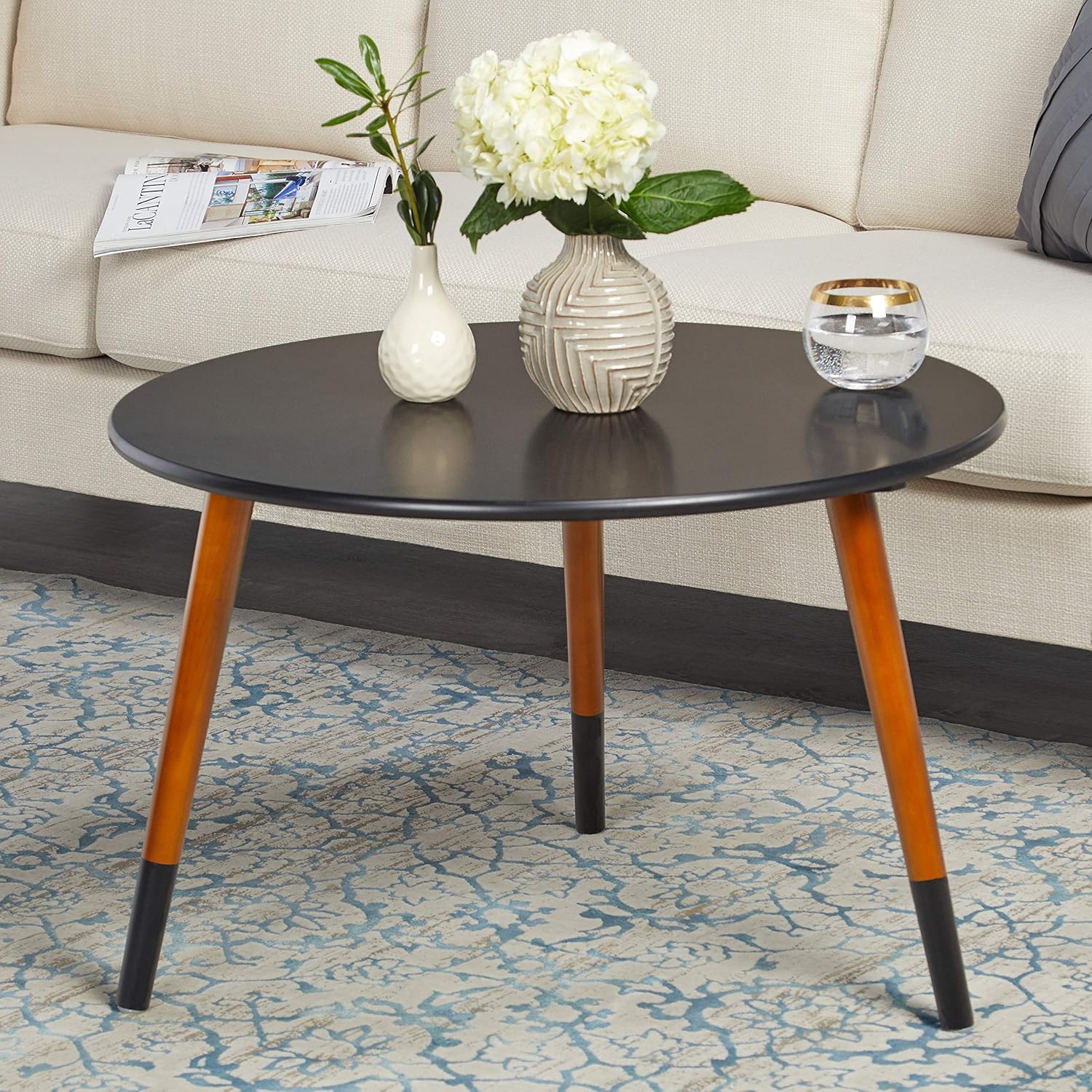 Target Marketing Systems Livia Collection Ultra Modern Round Coffee Table With Splayed Leg Finish, Black/Wood