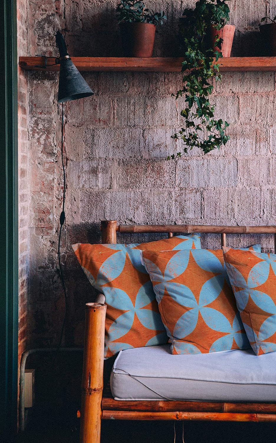 Handmade Retro Outdoor Throw Pillows 20" - Set of 2 Orange & Blue Retro Star Pattern indoor/outdoor Pillows for your patio