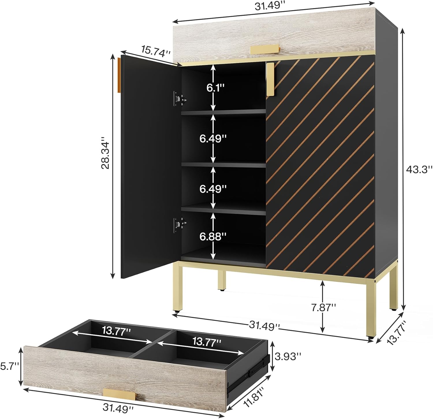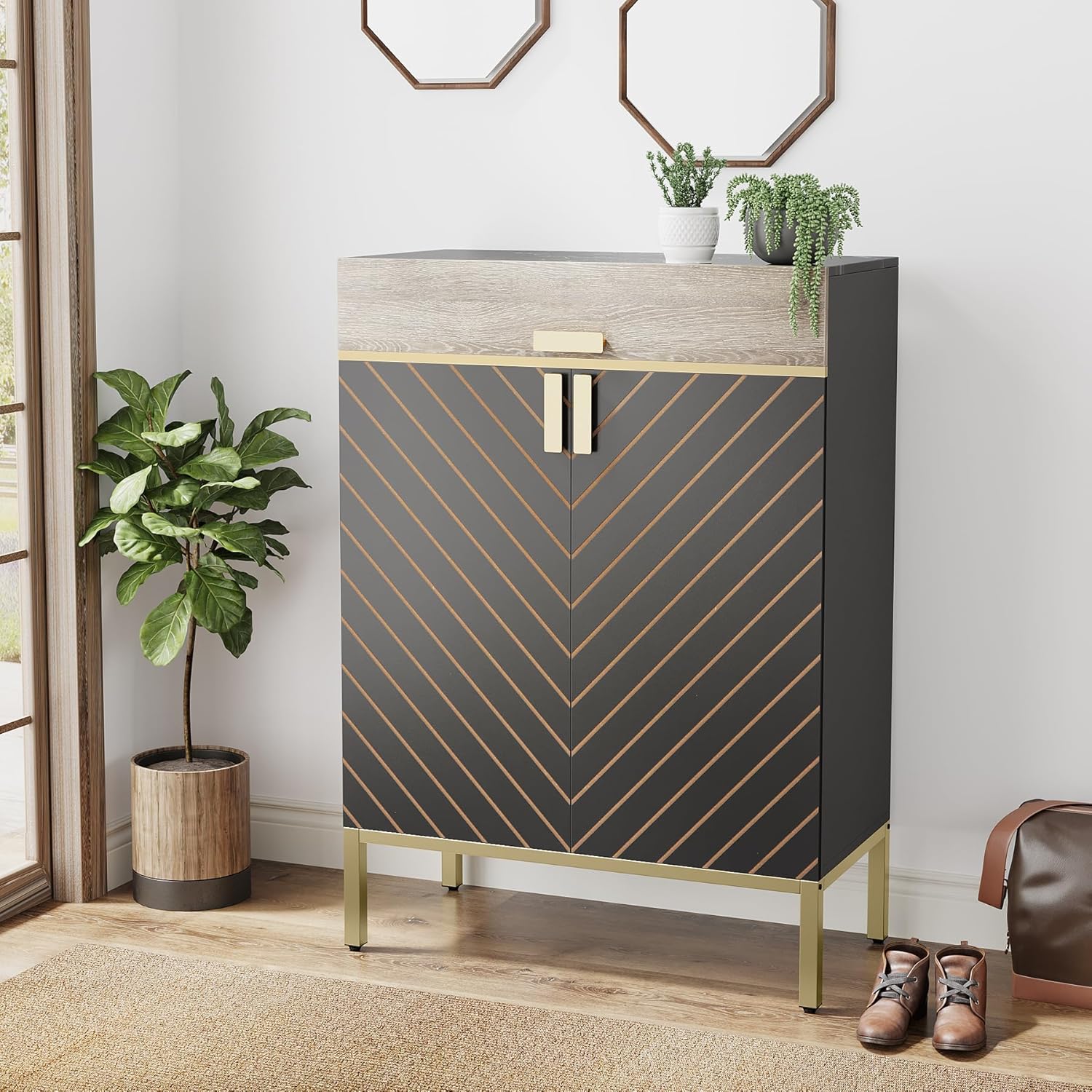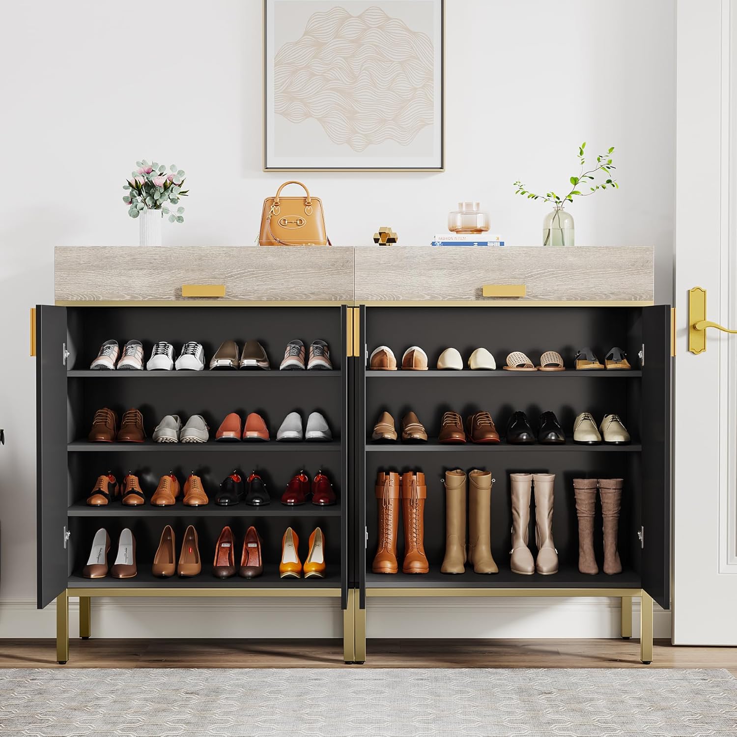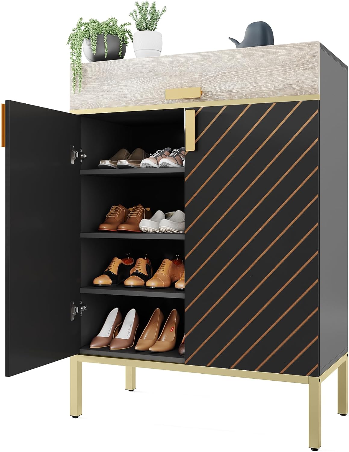 Shoe Cabinet with Drawers, Modern Shoe Storage Cabinet with Doors for Entryway