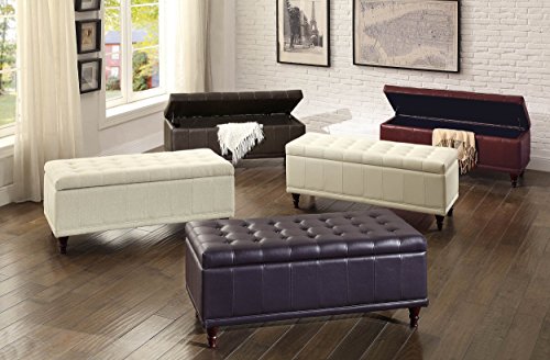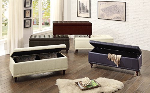 Homelegance Faux Leather Lift Top Storage Bench with Tufted Accents, Dark Brown