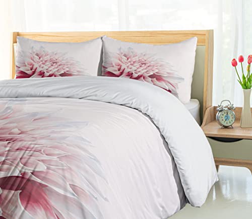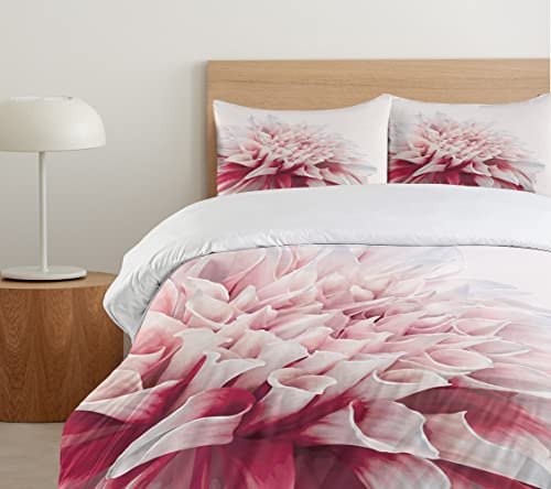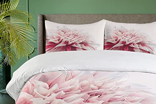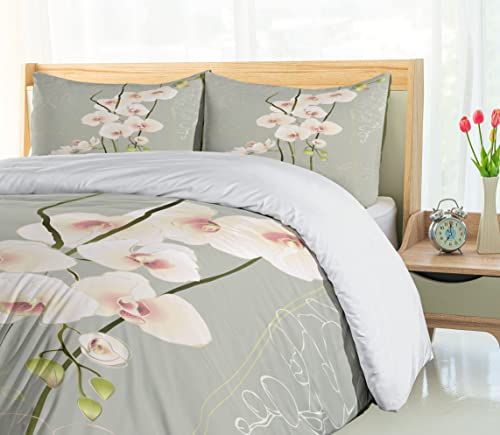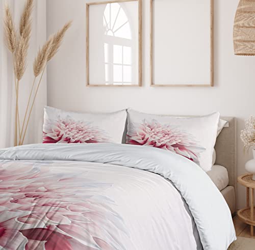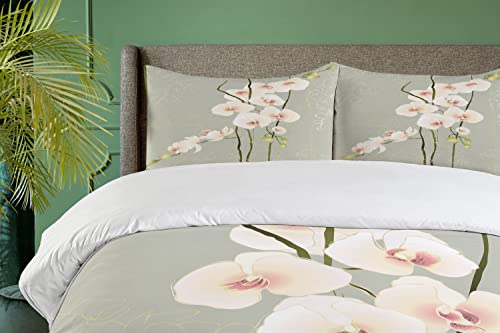 Ambesonne Flower Duvet -Cover Set, Orchid Flower Floral Nature Country Inspired Design Petals -Stencil Artwork, Decorative 3 Piece Bedding Set with 2 Pillow Shams, Queen Size, Pink Grey