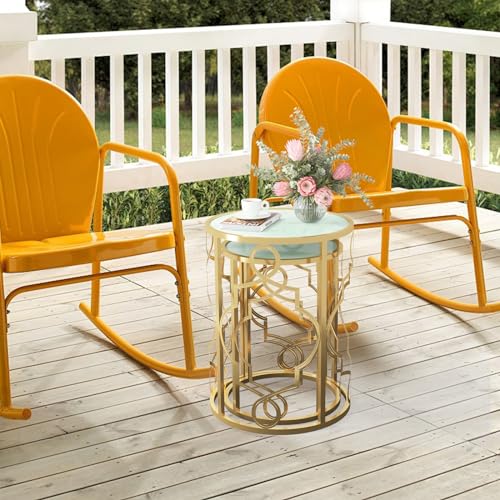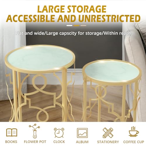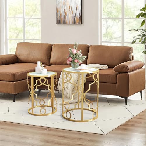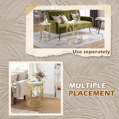 RiteSune Gold Round Side Table Marble Top Set of 2, Mid Century Modern Circle End Tables Accent Table for Small Space, Living Room, Bedroom, Foyer, Entryway - Assemble Already