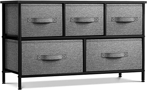 Sorbus Dresser with 5 Drawers - Storage Chest Organizer Unit with Steel Frame, Wood Top, Easy Pull Fabric Bins - Long Wide TV Stand for Bedroom Furniture, Hallway, Closet & Office Organization