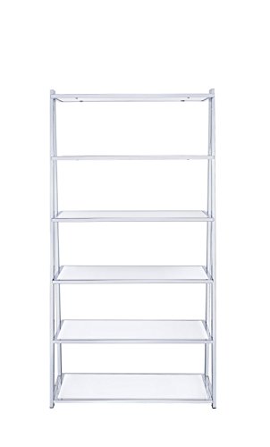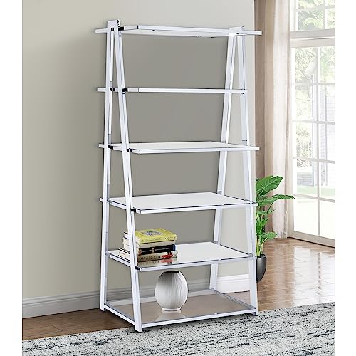 Acme Coleen Leaning Bookcase in White High Gloss and Chrome
