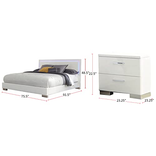 Coaster Felicity California King Bed 5-Piece Set, White High Gloss