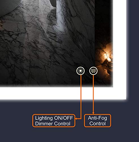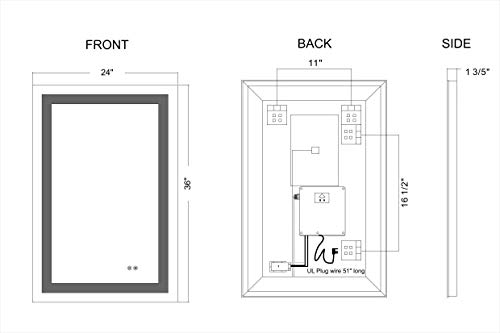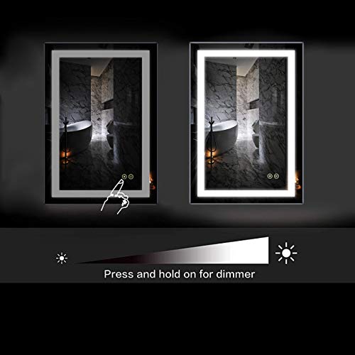 Dimmable Lighted Bathroom Mirror with Defogger and Memory Touch Switch| High Lemens Make Up Vanity Mirror 6500K CRI>90 (APEX-2436 24x36inch)