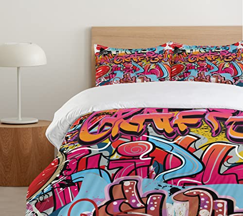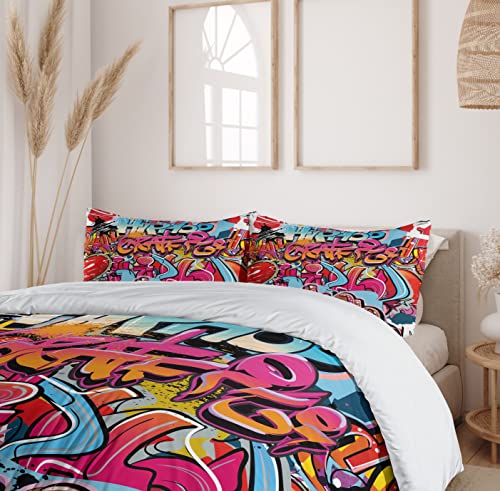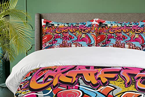 Ambesonne Queen Duvet Cover Set, Hand Drawn Crown Lettering Baroque Style Elements Calligraphy Print, Decorative 2 Piece Bedding Set with 1 Pillow Sham, Twin Size, Charcoal White