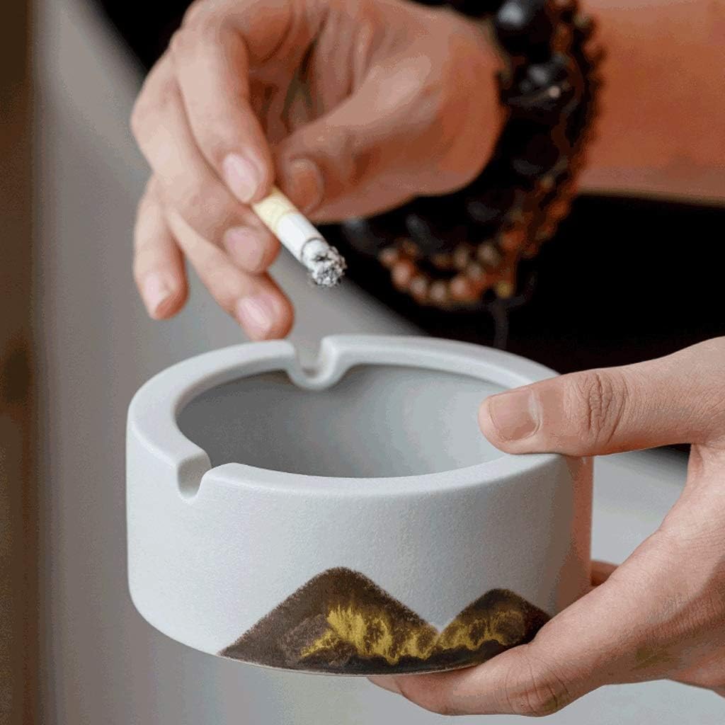 Home furnishings Ceramic Ashtray Mountain Peak Pattern Ash Tray for Cigarettes Zen Table Decoration Ash Holder for Indoor Outdoor Use -Black/White Nice Extra Decoration (Color : Black)