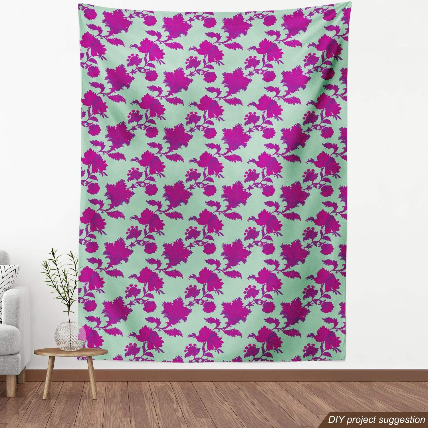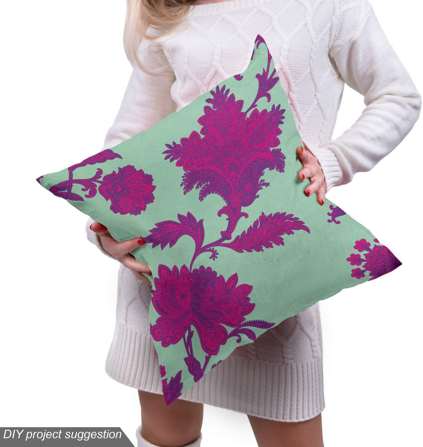 Ambesonne Shabby Flora Fabric by The Yard, Retro Spring Blossom Flowers French Garden Florets Garland Artisan Image, Decorative Fabric for Upholstery and Home Accents, 3 Yards, Mint Pink