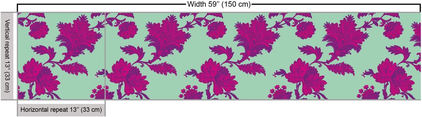 Lunarable Oriental Fabric by The Yard, Ethnic Style Ornamented Peony Flowers Vintage Garden Art, Decorative Fabric for Upholstery and Home Accents, 1 Yard, Green Hot Pink