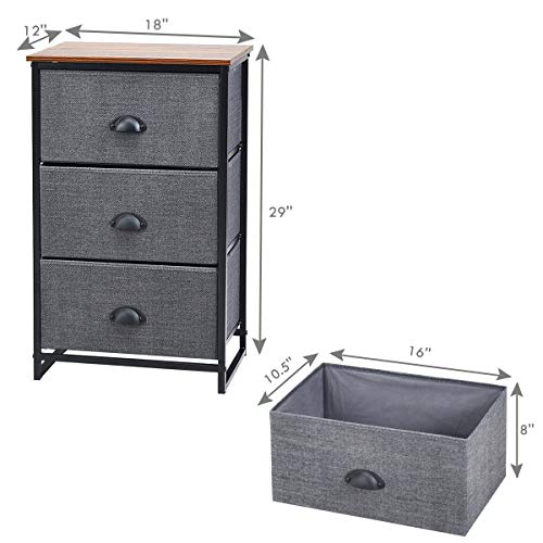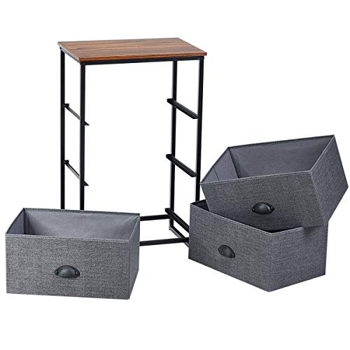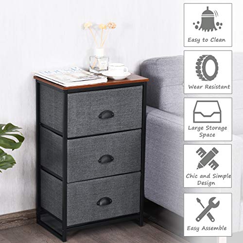 Giantex Nightstand W/Fabric Drawers, Sturdy Steel Frame and Wood Top Organizer Unit for Bedroom, Living Room, Entryway,Closets End Table (20.5’’(H), White)