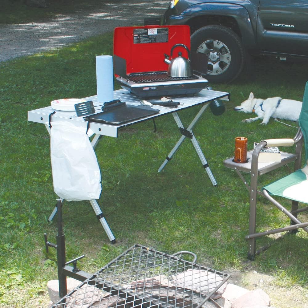 RIO Brands Gear Compact Expandable Outdoor and Camping Aluminum Roll-Top Heat Dissipating Picnic Table, Silver, 2 in 1