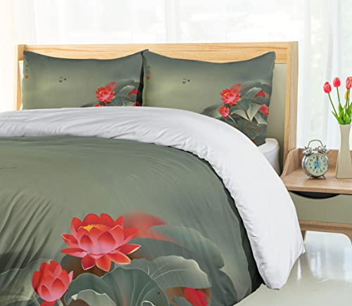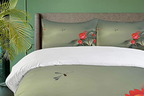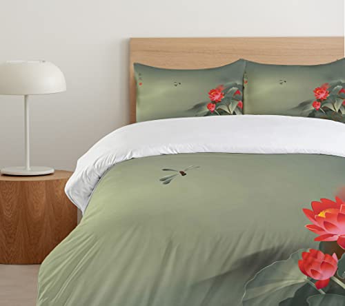 Ambesonne Flower Duvet Cover Set, Little Red Spring Summer Time Garden Florals Field Poppy Artwork, Decorative 3 Piece Bedding Set with 2 Pillow Shams, King Size, White Pink