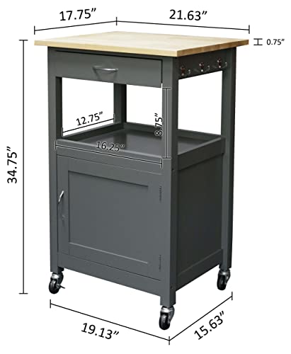 eHemco Kitchen Island Cart on Wheels with Drawer, Storage Cabinet, Shelf and Natural Solid Hardwood Top, Black Base