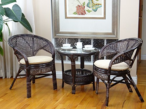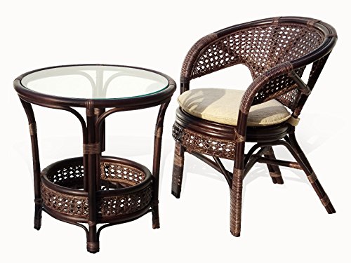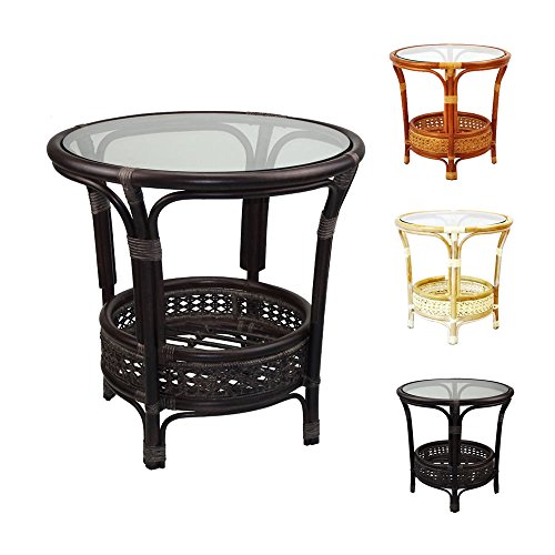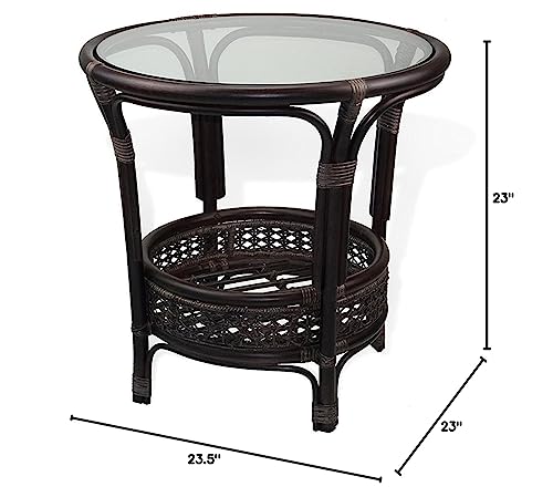 Pelangi Coffee Round Table Dark Brown Color Handmade ECO Natural Rattan Wicker with Glass Top